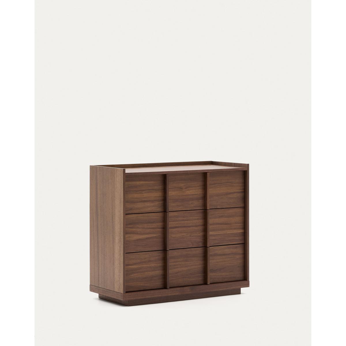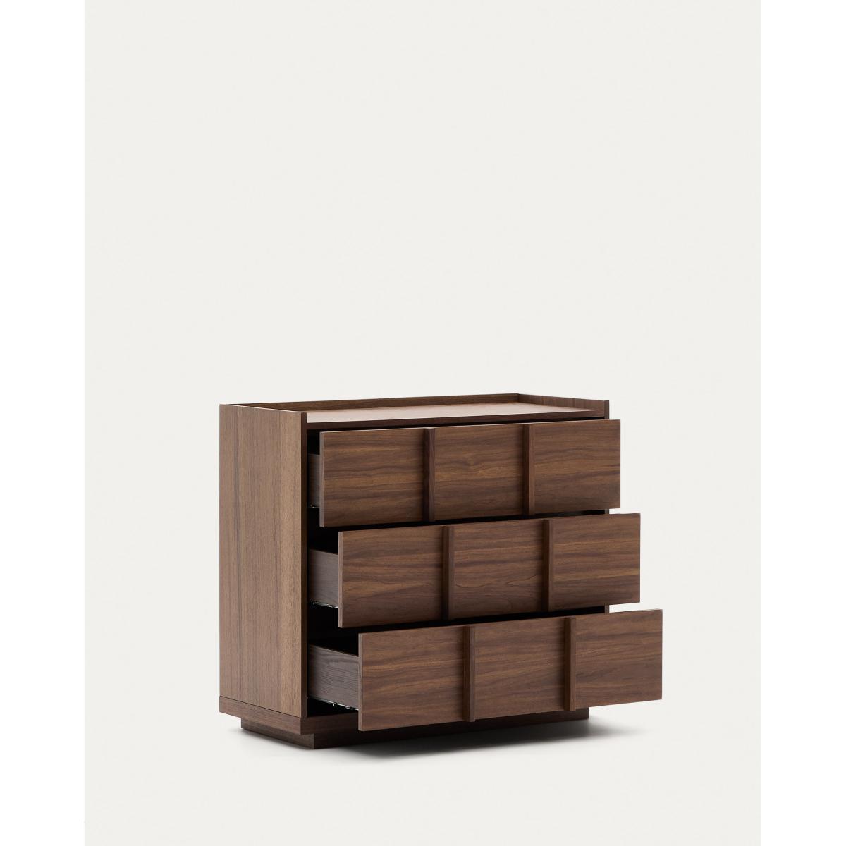 Onix chest of drawers with 3 drawers and a walnut veneer in a dark finish, 100 x 78 cm