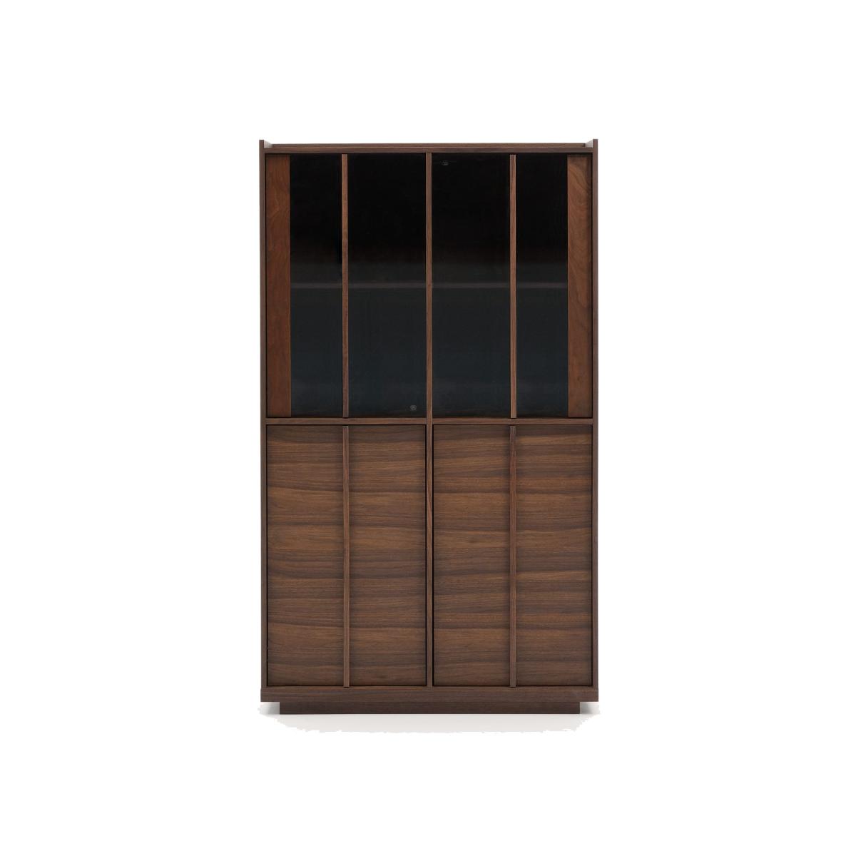 Onix display cabinet made of solid walnut with a walnut veneer in a dark finish 101 x 170 cm