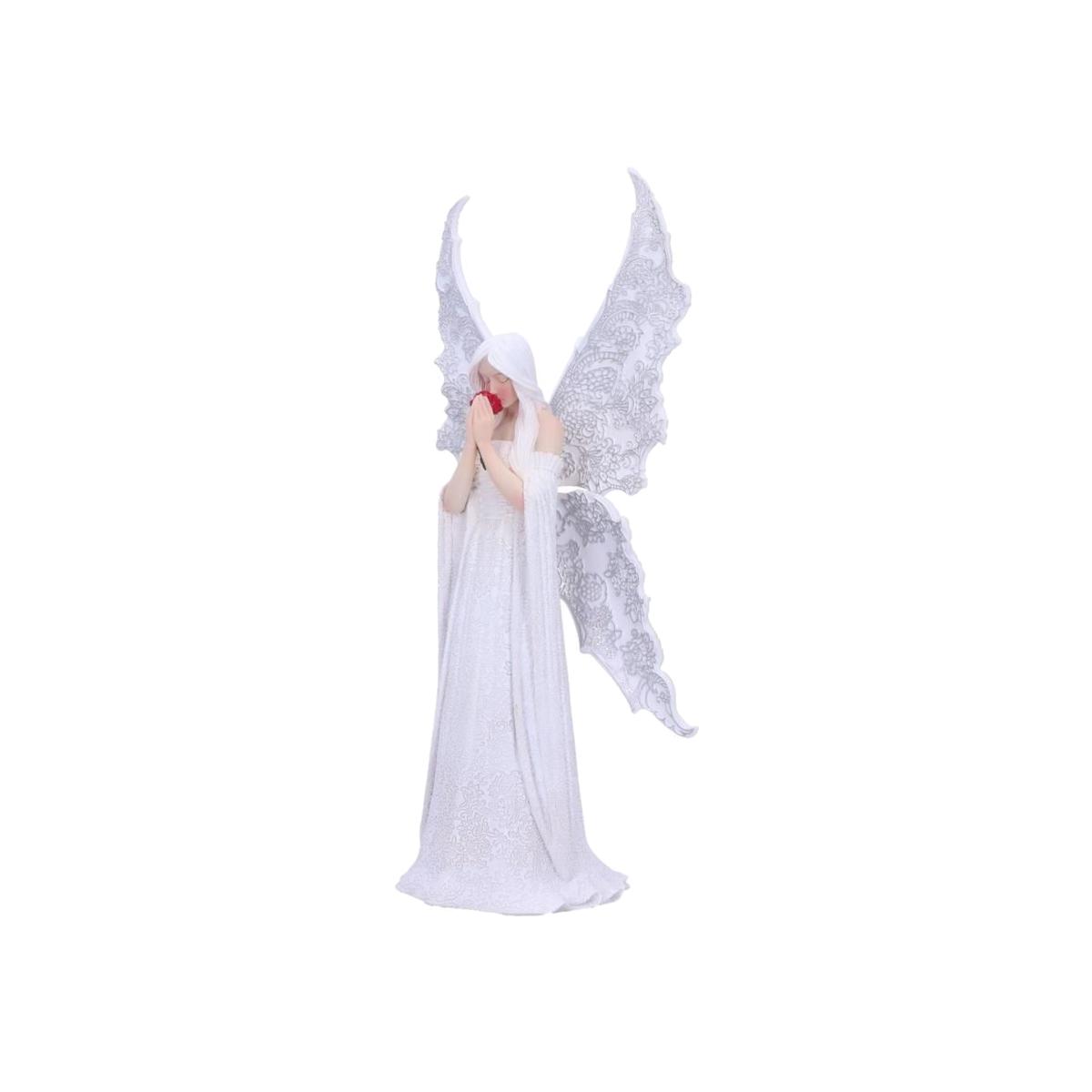 Exclusively licensed to Nemesis Now, this bronze Fantasy figurine comes from the fantastic imagination of world-renowned artist Anne Stokes. Standing with flowing locks framing her dainty face, an innocent Fairy wears a long lace dress, wings spread wide behind her with the same pattern repeated on them. Head bowed and eyes closed, she holds a small bouquet of roses to her face, lost in a reverie. After everything that has happened, after all that was said and done, all that is left is love. That's all she has. From Anne Stokes' Gothic Fantasy imagination, this figurine projects an air of calm and contemplation and is a wonderful gift for those who have hidden depths.