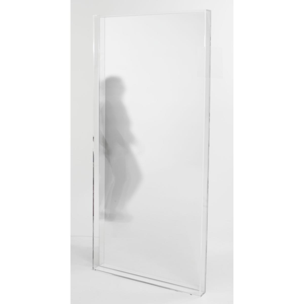 Designed by Starck, Only Me is a mirror (size 80x180 cm ), encased in a slim PMMA frame of 8 cm, made of various transparent colours - emerald green, fuchsia and azure, or in the two matte classics of white and black.