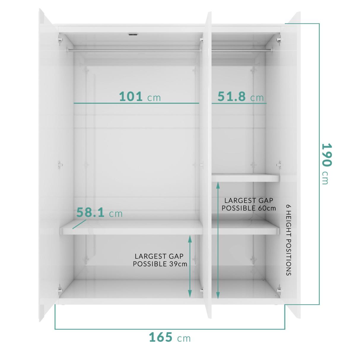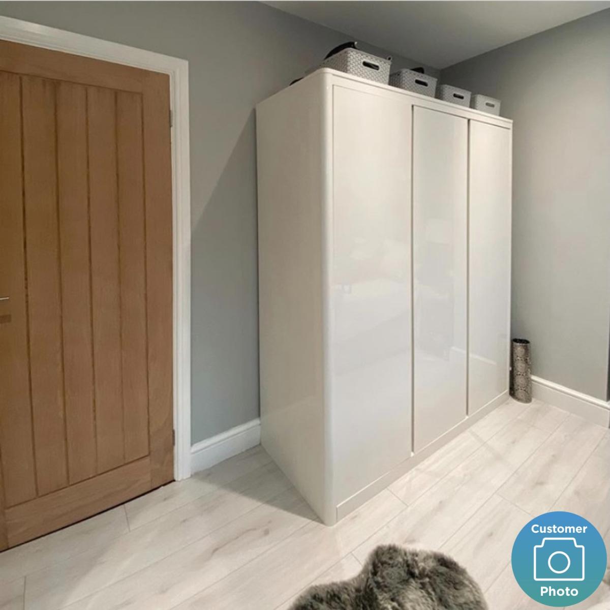 Our Only Opened item is in brand-new, pristine condition, although its box has been opened and resealed. At an unbeatable price, you can get the look for even less. This item is also available for speedy delivery, so you won’t have to wait long to enjoy your new addition. Be quick, this won’t be available for long! Our Only Opened item is in brand-new, pristine condition, although its box has been opened and resealed. At an unbeatable price, you can get the look for even less. This item is also available for speedy delivery, so you won’t have to wait long to enjoy your new addition. Be quick, this won’t be available for long! This Lexi wardrobe is a double mirror single high gloss wardrobe with curved edges. The Lexi 3 door wardrobe will suit any interior ,its clean lines and flawless gloss finish will create a super modern feel, it comes with soft close hinges, adjustable shelves and adjustable feet that can be adjusted once the wardrobe is built and put in place. Assembly required however you will find our tailor made instructions easy to follow with numbered panels and each main panel has a protective film that keeps your furniture in great condition even when its being assembled. Don’t forget to take a look at the rest of the Lexi range as each piece is just as fantastic as this one, we also have a wide range of chairs and beds to compliment this range. This wardrobe comes with white doors, mirrored doors and a sliding door option, its also available In Black.