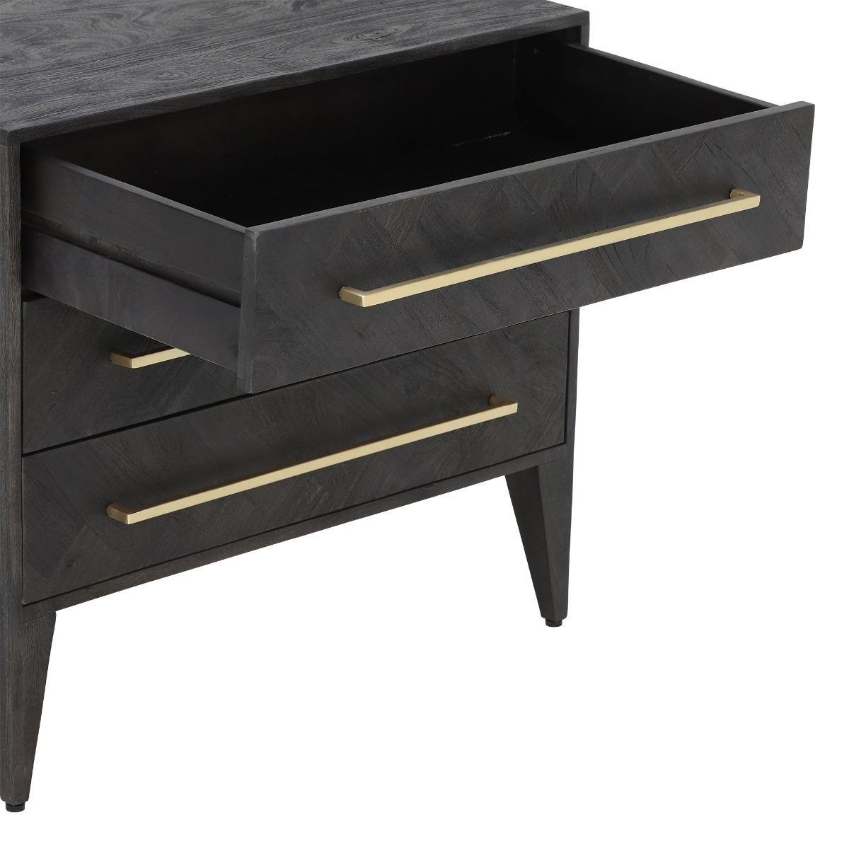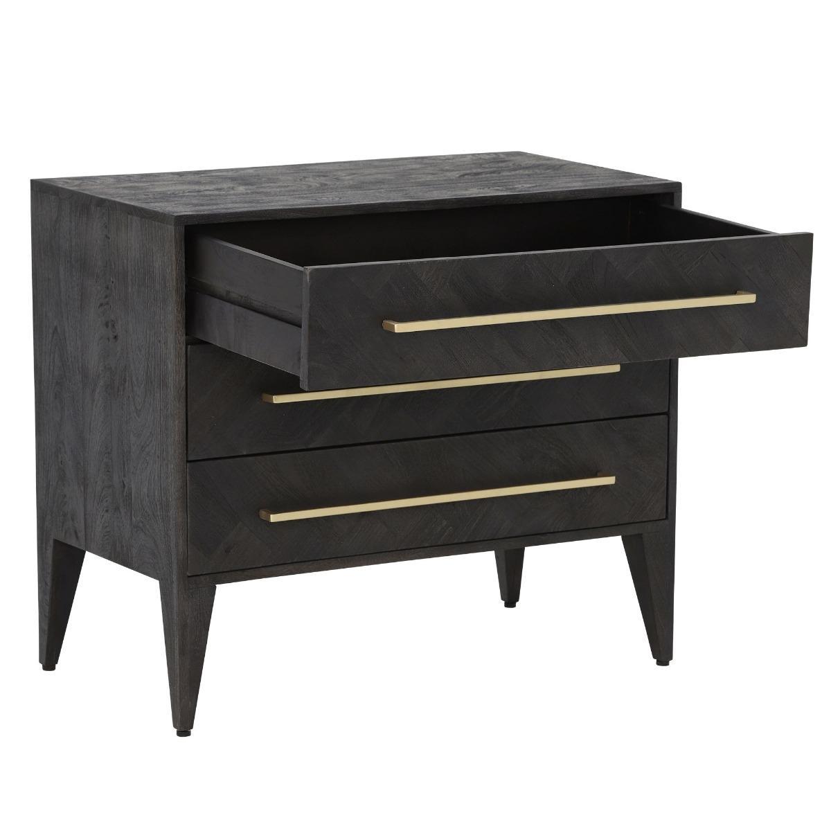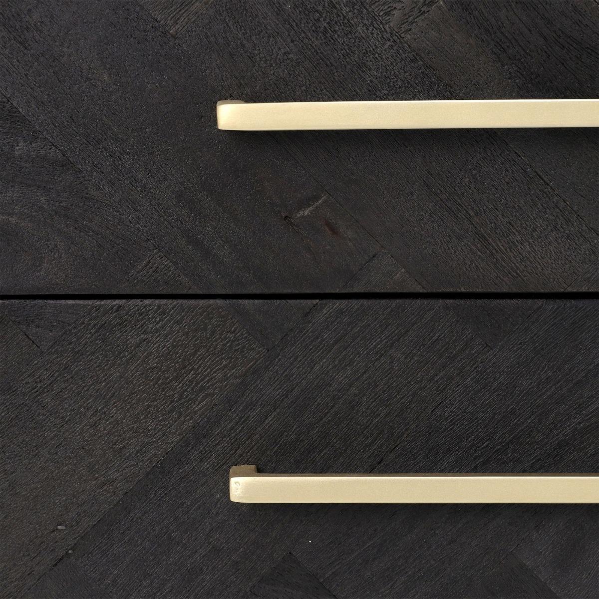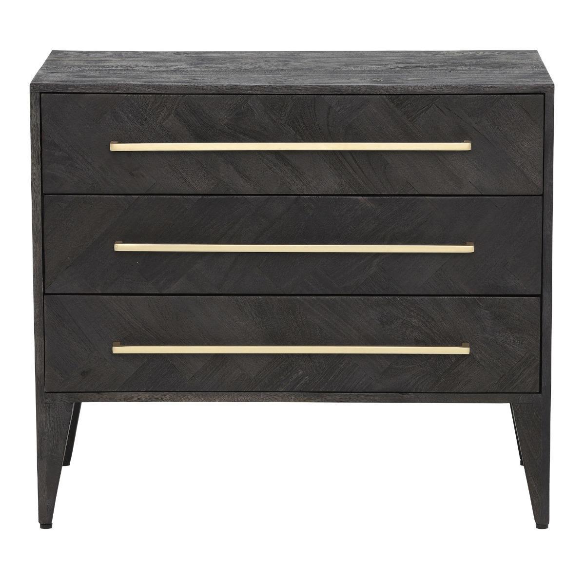 Design. Dark and mysterious, the Onyx 3 Drawer Chest is a perfect example of modern furnishing. Opulent in aesthetic with antique brass handles that complement the black mango wood body and drawers, Onyx is the perfect choice for adding a focal point and depth to your bedroom. Soft close drawers are a lovely finishing touch, ensuring that no sleep is disturbed.