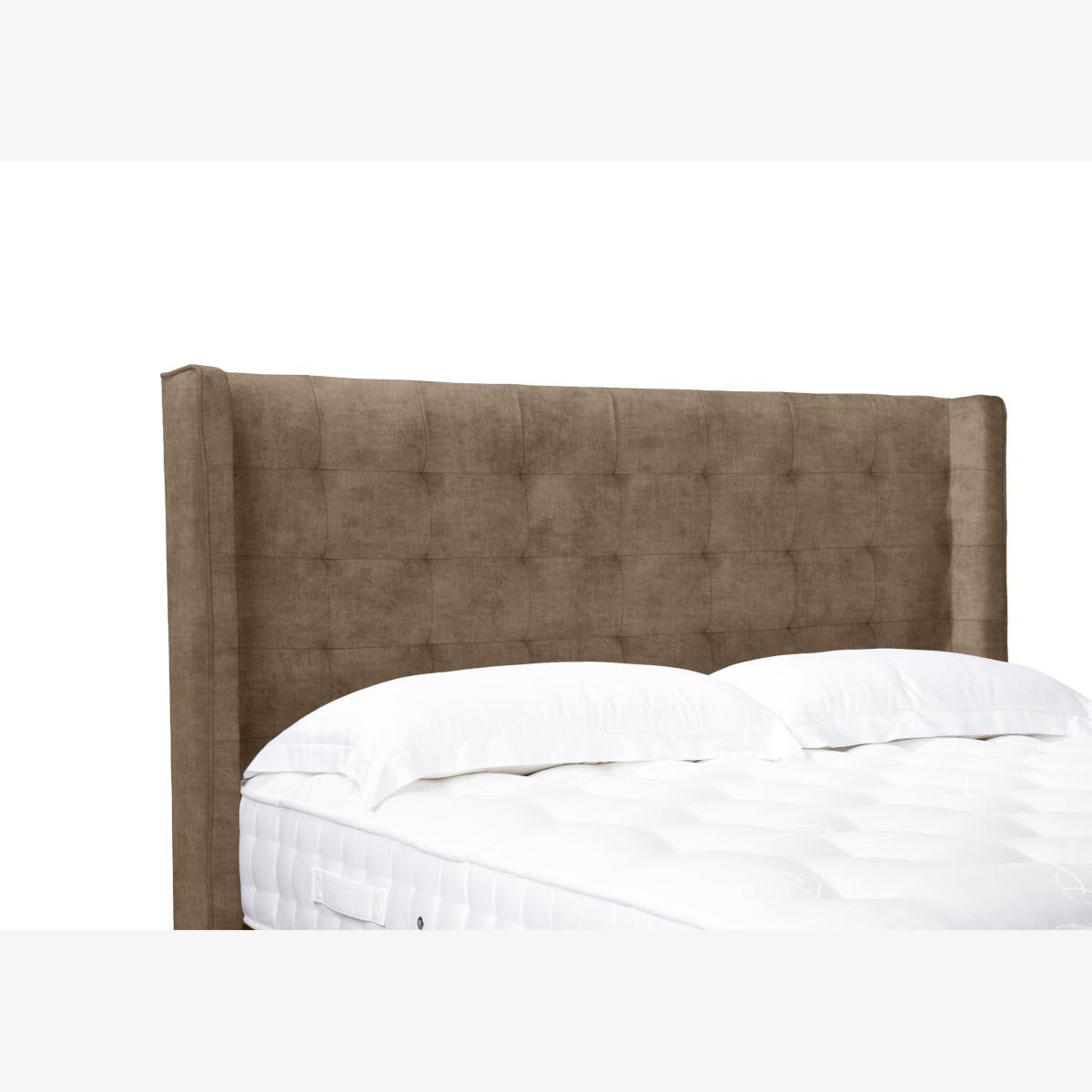 Discover The Artisan Collection, designed to bring handcrafted luxury and style to your bedroom. This premium range includes a selection of divan bases – from traditional platform tops offering a firmer feel to sumptuous pocket sprung options for enhanced mattress comfort. Many divan bases are available with storage drawers, in both standard and on-trend shallow designs. Complement your divan with one of the collection’s striking floor-standing headboards, including standout winged designs. Each piece in The Artisan Collection is beautifully upholstered in a wide choice of luxury fabrics and handcrafted in the UK, ensuring exceptional quality and elegant style for your sleep sanctuary. Simple, elegant and beautifully upholstered, our Onyx floor standing headboard channels boutique hotel style. Handcrafted for Furniture Village. Why you'll love it Elevate your bedroom with this boutique hotel-style floor standing headboard. Clean and contemporary with winged sides and a buttoned finish. Fully upholstered from top to floor for a flawless finish and a luxurious look. In a choice of beautiful fabrics. Handcrafted in the UK. Find the Onyx floor standing headboard only at Furniture Village. What you need to know This floor standing headboard is supplied with bolts to attach it to a divan base. Available in single, small double, double, king and super king sizes. 145 cm tall. Clean regularly using a soft brush or vacuum with the curtain attachment. Deal with any spills promptly. Professional cleaning advised for oil- and grease-based stains. Some fabrics can show wear on areas of more use or in direct sunlight. Item code: ONYXH140--035