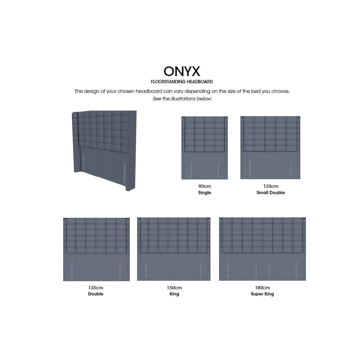 Discover The Artisan Collection, designed to bring handcrafted luxury and style to your bedroom. This premium range includes a selection of divan bases – from traditional platform tops offering a firmer feel to sumptuous pocket sprung options for enhanced mattress comfort. Many divan bases are available with storage drawers, in both standard and on-trend shallow designs. Complement your divan with one of the collection’s striking floor-standing headboards, including standout winged designs. Each piece in The Artisan Collection is beautifully upholstered in a wide choice of luxury fabrics and handcrafted in the UK, ensuring exceptional quality and elegant style for your sleep sanctuary. Simple, elegant and beautifully upholstered, our Onyx floor standing headboard channels boutique hotel style. Handcrafted for Furniture Village. Why you'll love it Elevate your bedroom with this boutique hotel-style floor standing headboard. Clean and contemporary with winged sides and a buttoned finish. Fully upholstered from top to floor for a flawless finish and a luxurious look. In a choice of beautiful fabrics. Handcrafted in the UK. Find the Onyx floor standing headboard only at Furniture Village. What you need to know This floor standing headboard is supplied with bolts to attach it to a divan base. Available in single, small double, double, king and super king sizes. 145 cm tall. Clean regularly using a soft brush or vacuum with the curtain attachment. Deal with any spills promptly. Professional cleaning advised for oil- and grease-based stains. Some fabrics can show wear on areas of more use or in direct sunlight. Item code: ONYXH140--049