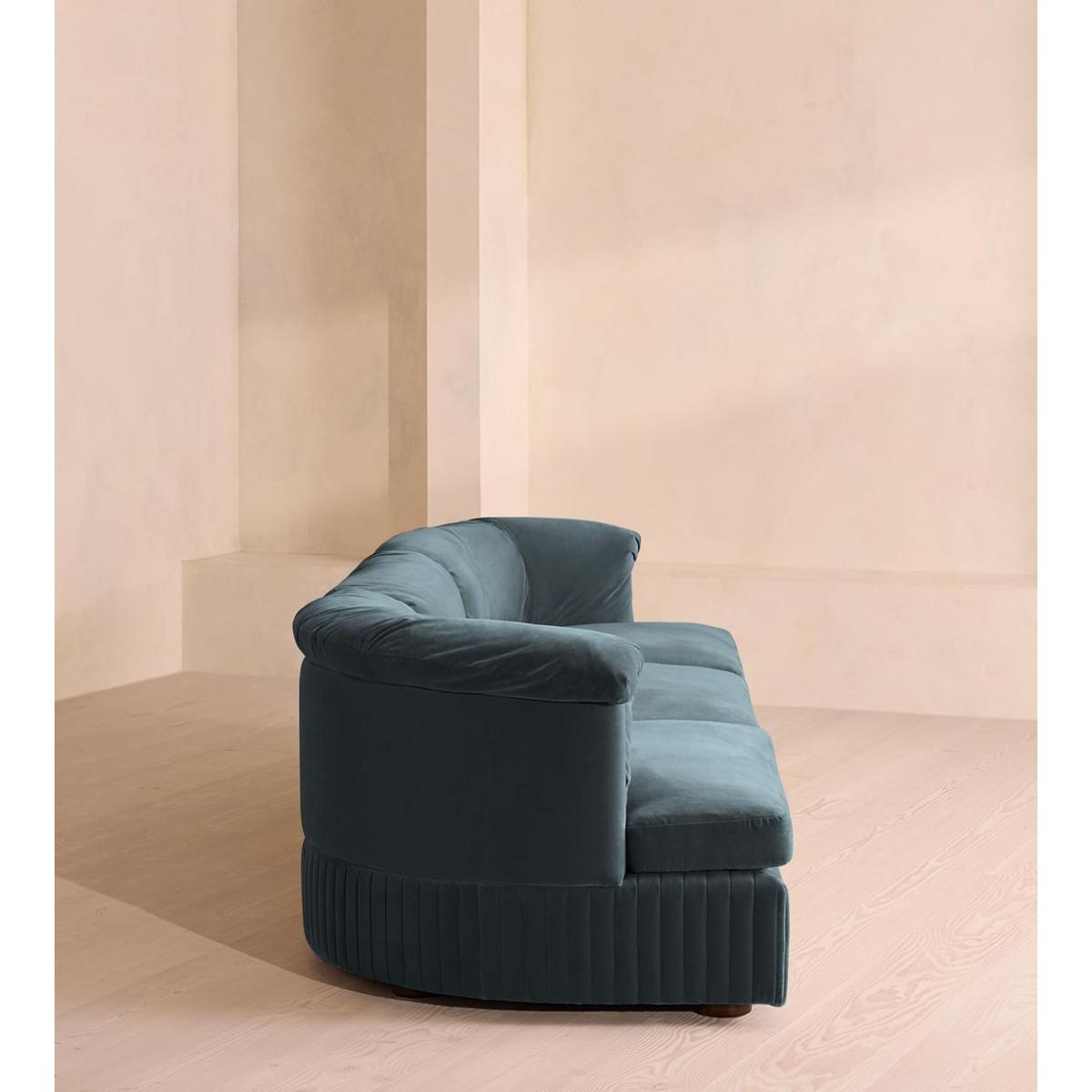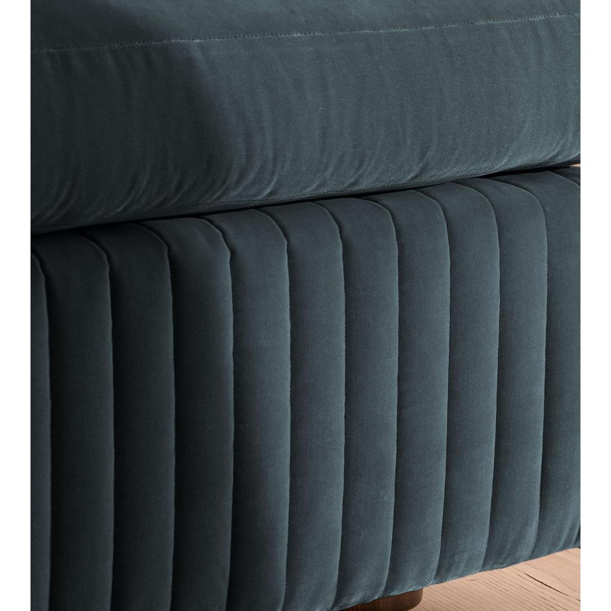 Made in the UK, a generous, rounded silhouette is finished with feather-wrapped cushions in velvet upholstery. Designed to perfectly adapt to your space, our Oona four-seater modular sofa is designed to create the ideal configuration for your living requirements. Comfortable feather-wrapped seat and back cushions are fully upholstered in velvet, complemented by channelled upholstery at the base.