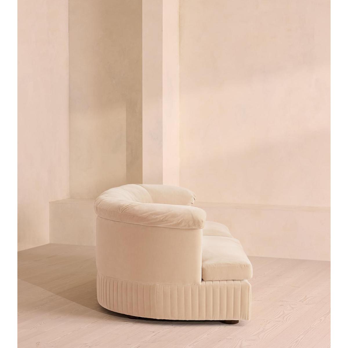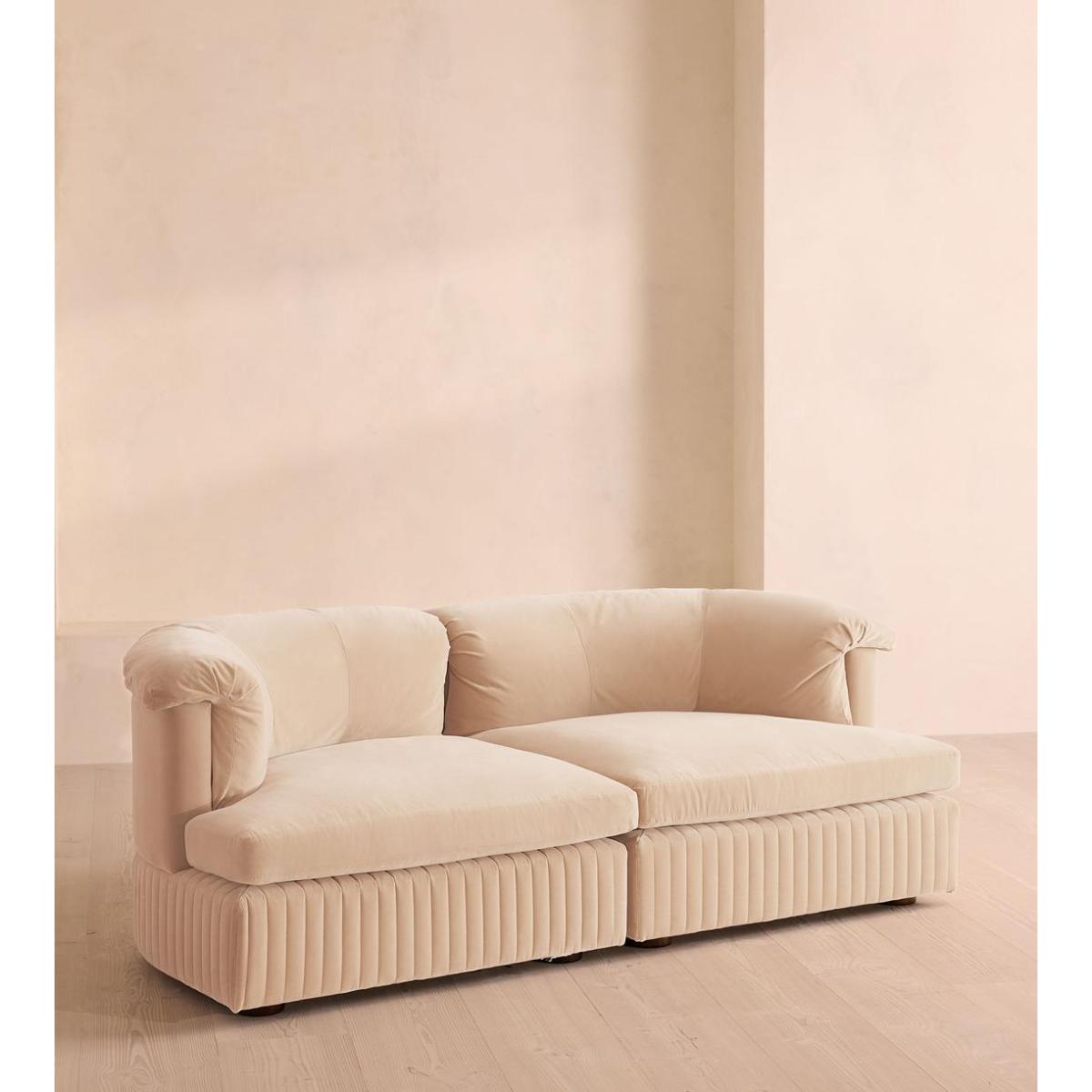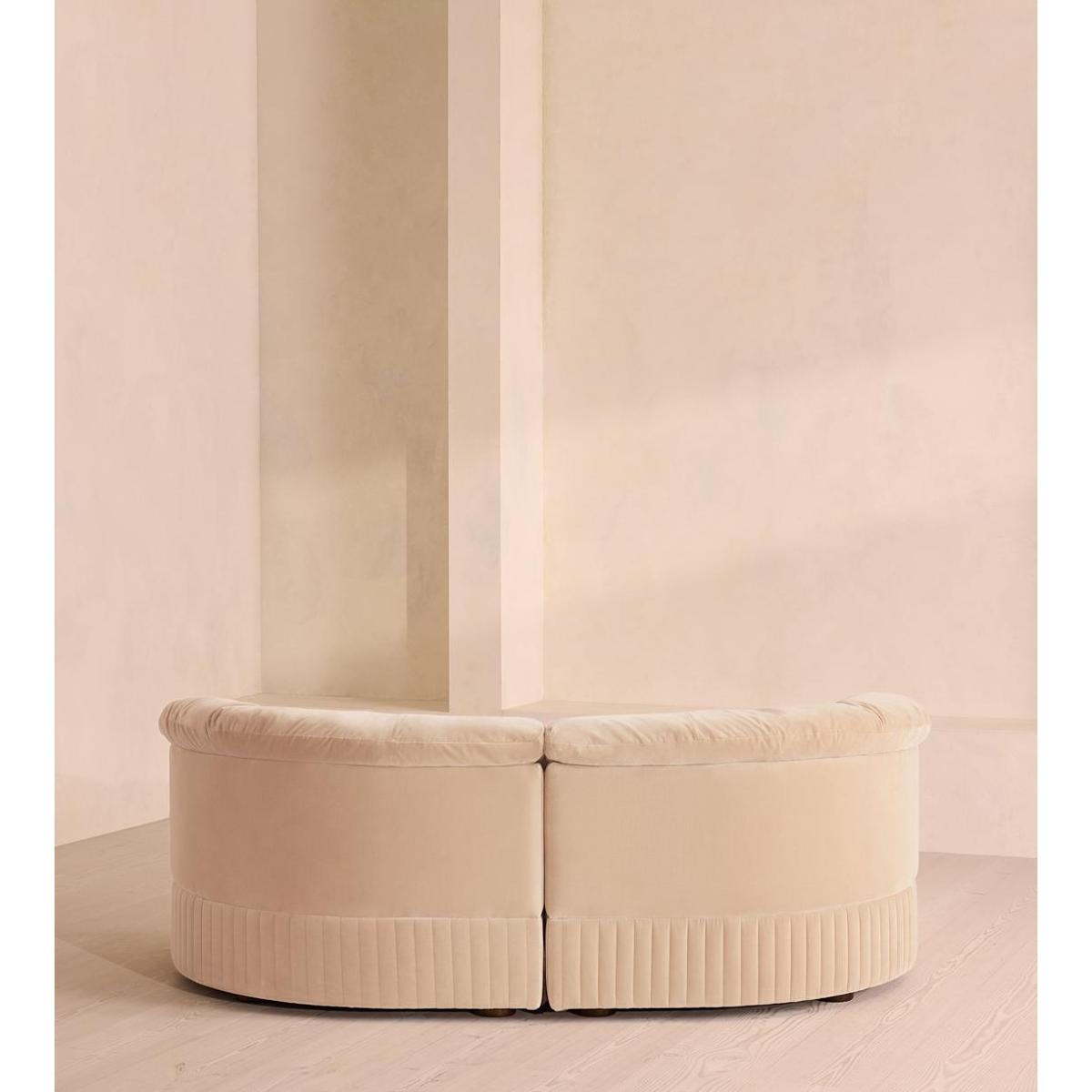 Made in the UK, a generous, rounded silhouette is finished with feather-wrapped cushions in velvet upholstery. Designed to perfectly adapt to your space, our Oona three-seater modular sofa is designed to create the ideal configuration for your living requirements. Comfortable feather-wrapped seat and back cushions are fully upholstered in velvet, complemented by channelled upholstery at the base.