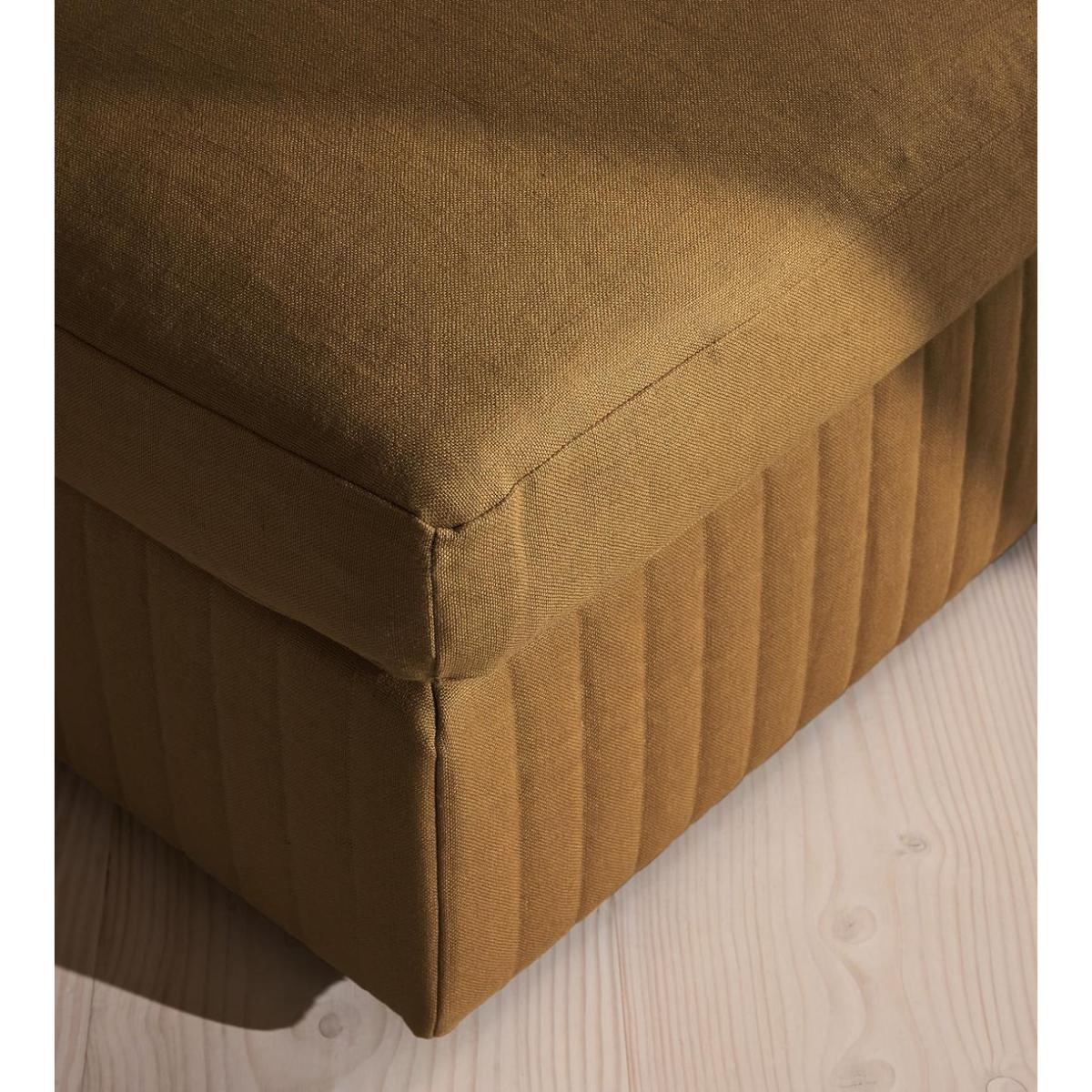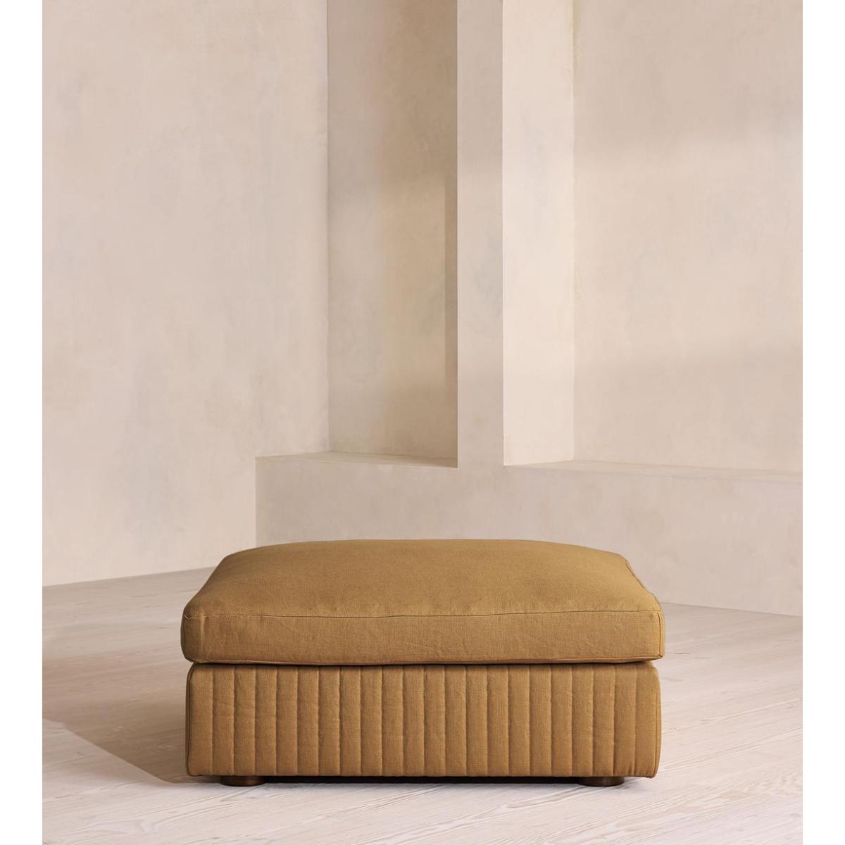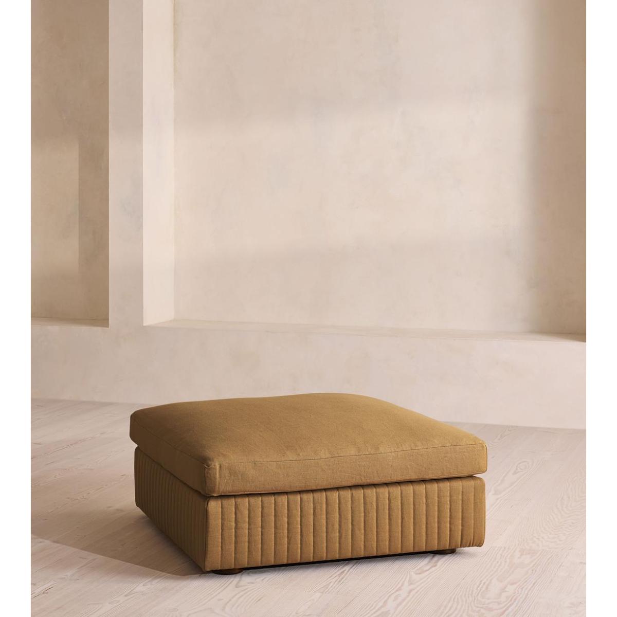 Made in the UK, a generous, rounded silhouette is finished with a feather-wrapped cushion in linen upholstery. Designed to perfectly adapt to your space, our Oona ottoman is made to mix and match with the collection's individual left or right arm, or corner modules to create the ideal configuration for your living requirements. A comfortable feather-wrapped cushion is fully upholstered in linen, complemented by channelled upholstery at the base.