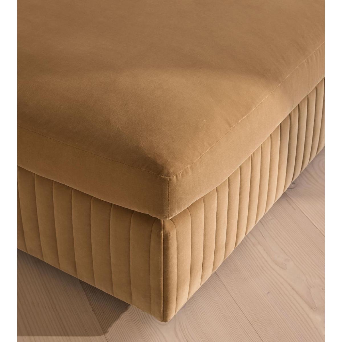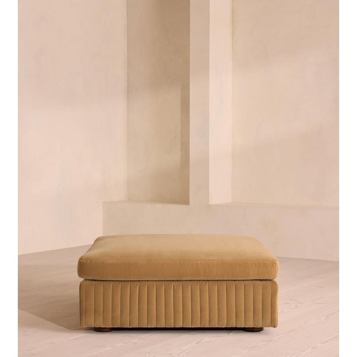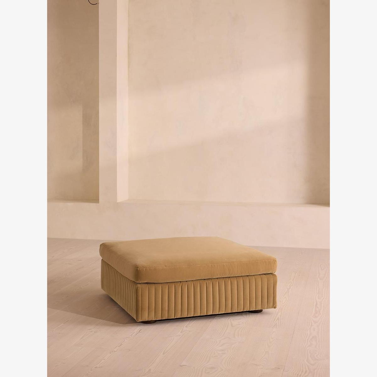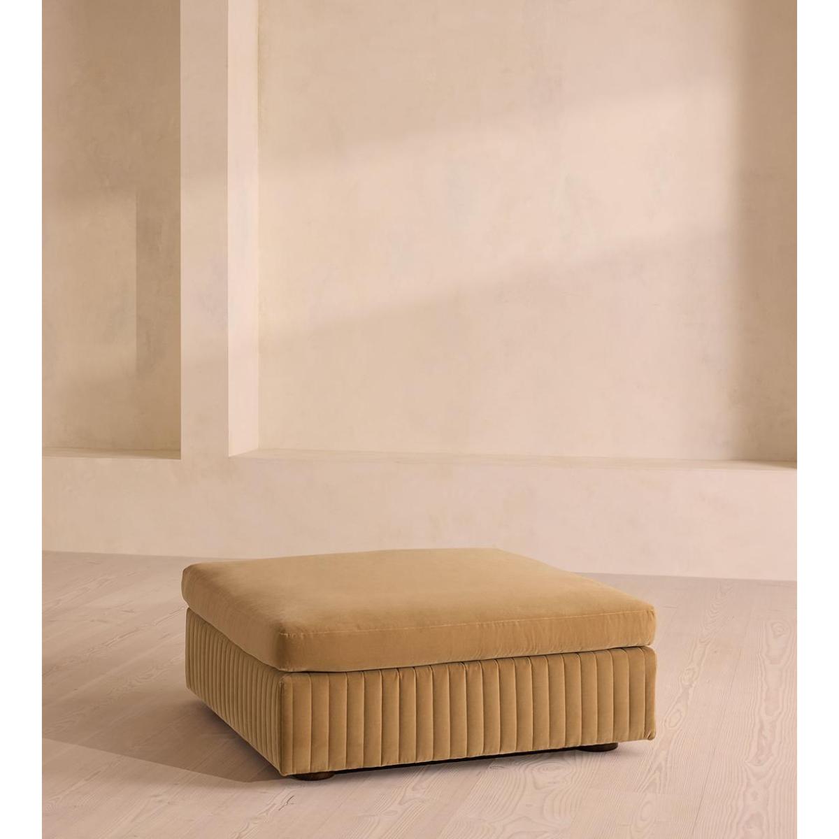 A generous, rounded silhouette is finished with a feather-wrapped cushion in velvet upholstery. Designed to perfectly adapt to your space, our Oona ottoman is made to mix and match with the collection's individual left or right arm, or corner modules to create the ideal configuration for your living requirements. A comfortable feather-wrapped cushion is fully upholstered in velvet, complemented by channelled upholstery at the base.