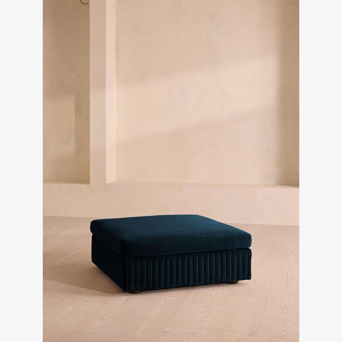 A generous, rounded silhouette is finished with a feather-wrapped cushion in velvet upholstery. Designed to perfectly adapt to your space, our Oona ottoman is made to mix and match with the collection's individual left or right arm, or corner modules to create the ideal configuration for your living requirements. A comfortable feather-wrapped cushion is fully upholstered in velvet, complemented by channelled upholstery at the base.