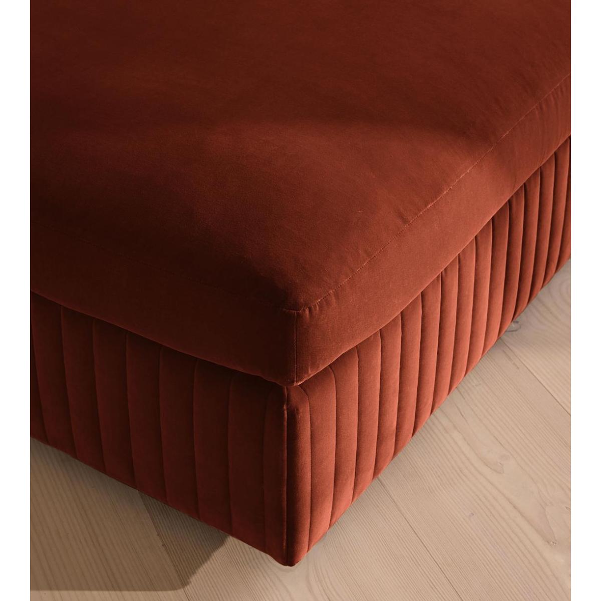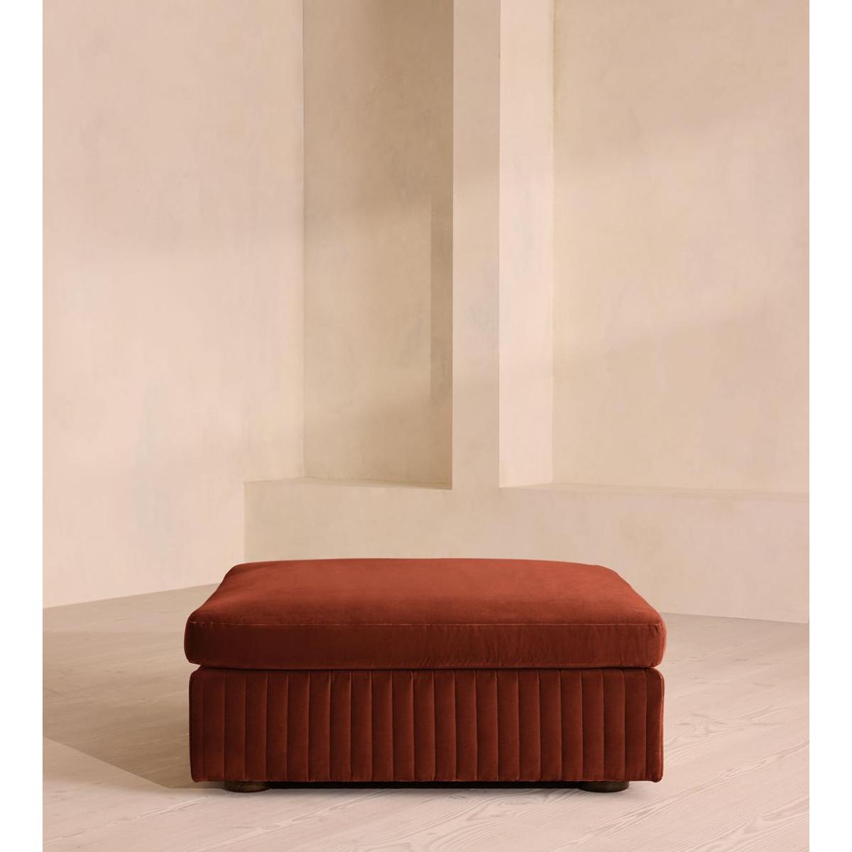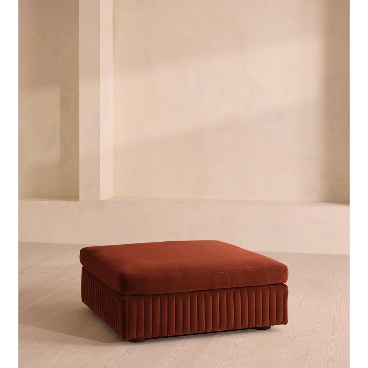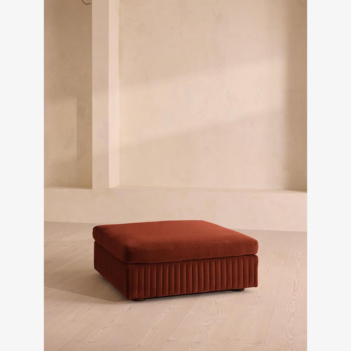 A generous, rounded silhouette is finished with a feather-wrapped cushion in velvet upholstery. Designed to perfectly adapt to your space, our Oona ottoman is made to mix and match with the collection's individual left or right arm, or corner modules to create the ideal configuration for your living requirements. A comfortable feather-wrapped cushion is fully upholstered in velvet, complemented by channelled upholstery at the base.