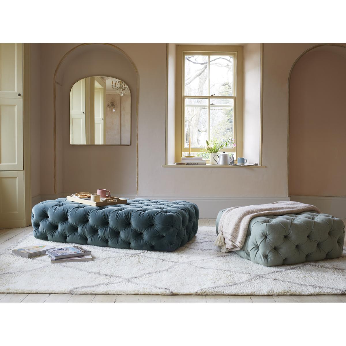 I love the wow factor of the lazy, tufted shape of this footstool - it’s both playful and sophisticated. It works really well in cosy, eclectic, or vintage-inspired interiors where a bit of personality is key. Its neutral, warm tone makes it versatile enough to complement diverse colour palettes, from muted tones to richer hues. For styling, I recommend placing it as a standalone piece in front of a sofa, or pairing it with an armchair for extra flexibility in seating and lounging. You can also dress it up with a soft throw or a tray on top for a more lived-in look. It’s a practical addition that adds both comfort and character to any casual living space.