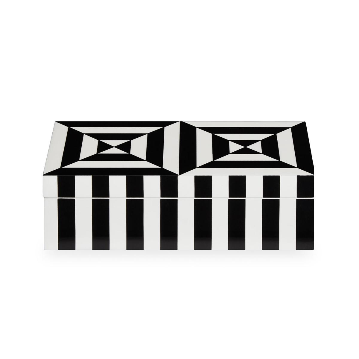 Op Art Small Box - / Lacquer - 20 x 10 cm by Jonathan Adler White/Black