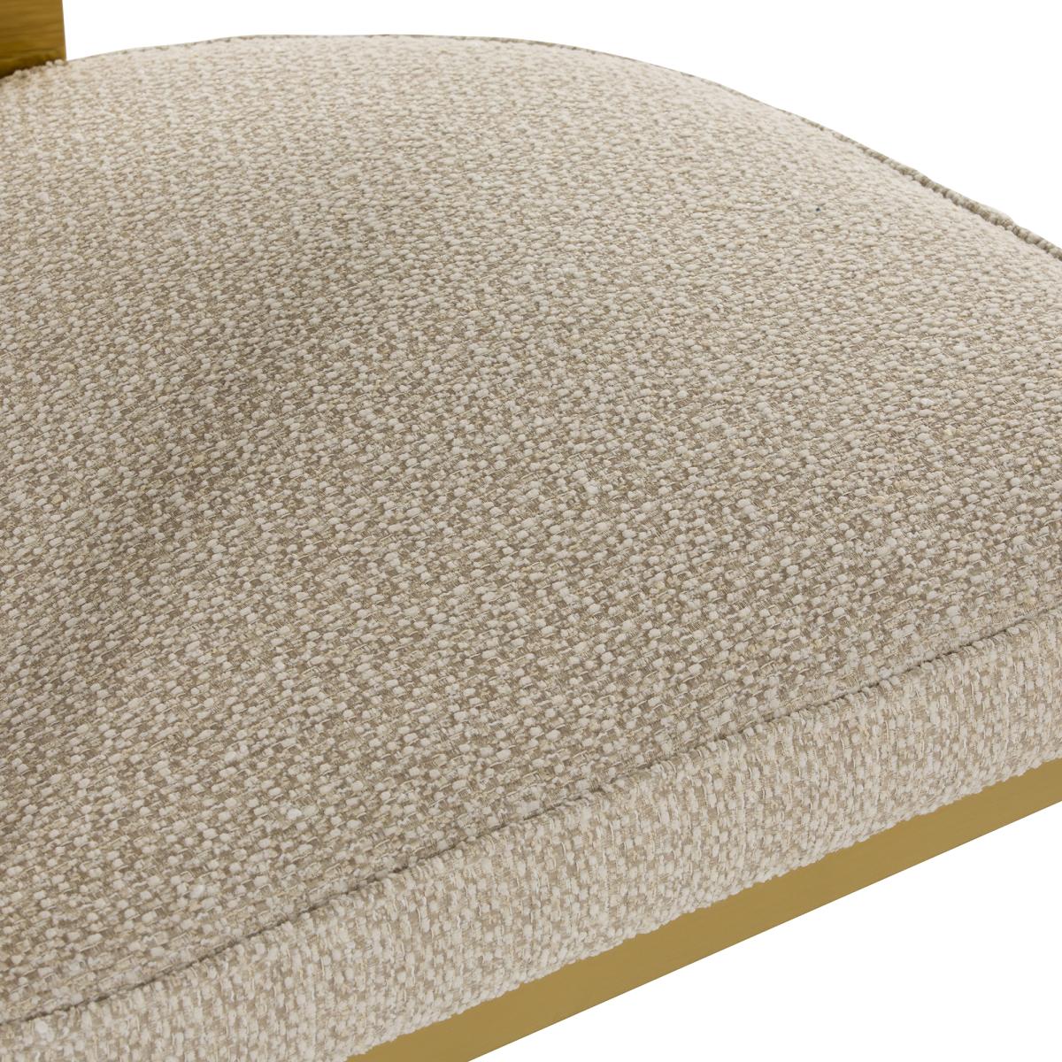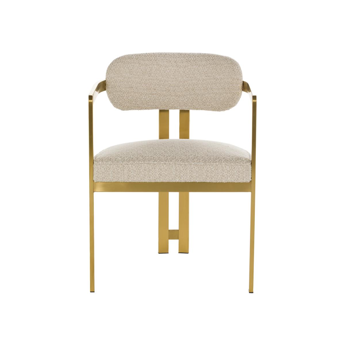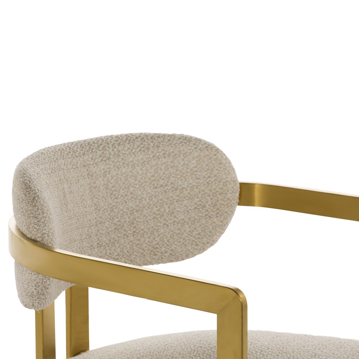 Comprising a bold design, the Opal Boucle Dining Armchair is the perfect choice for those who want to stand out from the crowd and impress guests. The daring gold frame upholding the soft, on trend boucle seat, is a juxtaposition that works harmoniously. Pair the Opal Neutral Dining Armchair with a travertine table to create a modern dining experience.