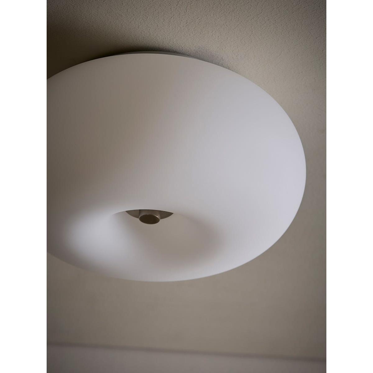 I love this ceiling light for its subtle elegance and versatility. The combination of opal glass and nickel makes it a timeless piece that works well in both contemporary and classic interiors. It's particularly suited to minimalist spaces where its clean lines can be appreciated, but it also pairs nicely with layered textures in more eclectic rooms. Practical styling tips include placing it in living rooms or bedrooms to provide soft, even lighting, and ensuring it’s hung at a height that doesn’t impede sightlines or movement. Its understated sophistication means it can be a focal point in a simple scheme or seamlessly blend into more detailed interiors.
