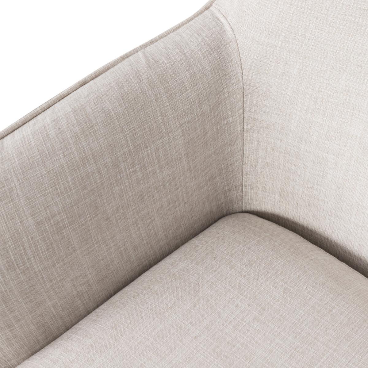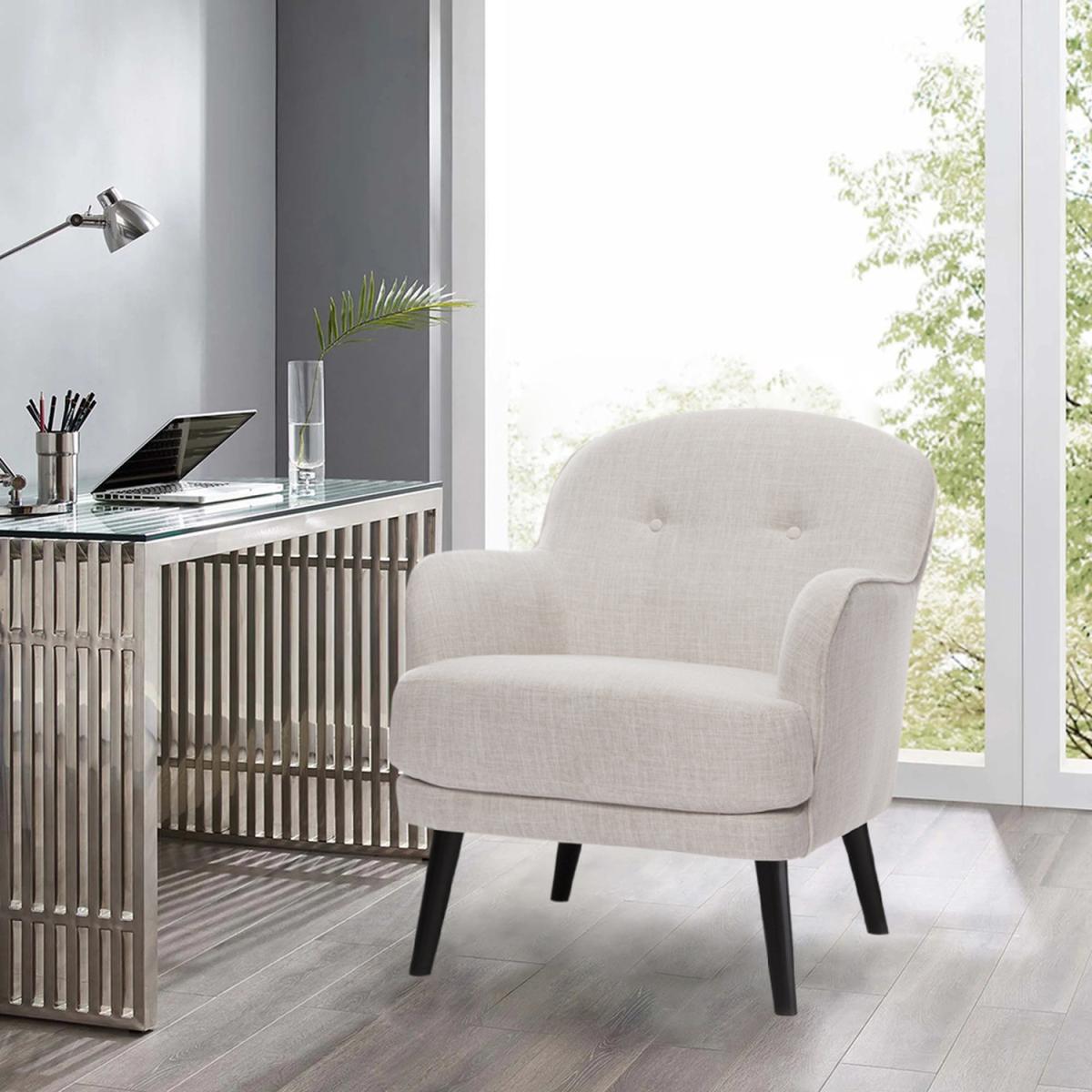I love this armchair for its versatile and understated style - the neutral beige linen makes it a great addition to a range of interiors, from Scandinavian minimalism to cosy traditional schemes. It works well as an accent piece in a living room or bedroom, providing a comfortable spot to unwind without overpowering the space. Practical styling tips include pairing it with both patterned and plain cushions to add visual interest, and placing it near a coffee table or side table to enhance its functionality. Its clean lines and neutral tone allow it to complement various colour schemes and textures, making it a flexible choice for updating or layering into existing rooms.