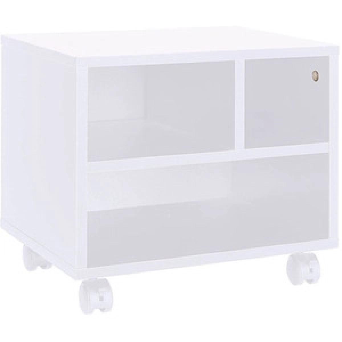 Multi-layer design, the top platform is used for printer/scanner/fax, etc, the below can store books, magazines, notebooks, paper, staplers, paper clips and other daily office supplies. Modern design with lockable wheels to everywhere you want. Ideal for office, study, personal studio, living room, bedroom, even kitchen.