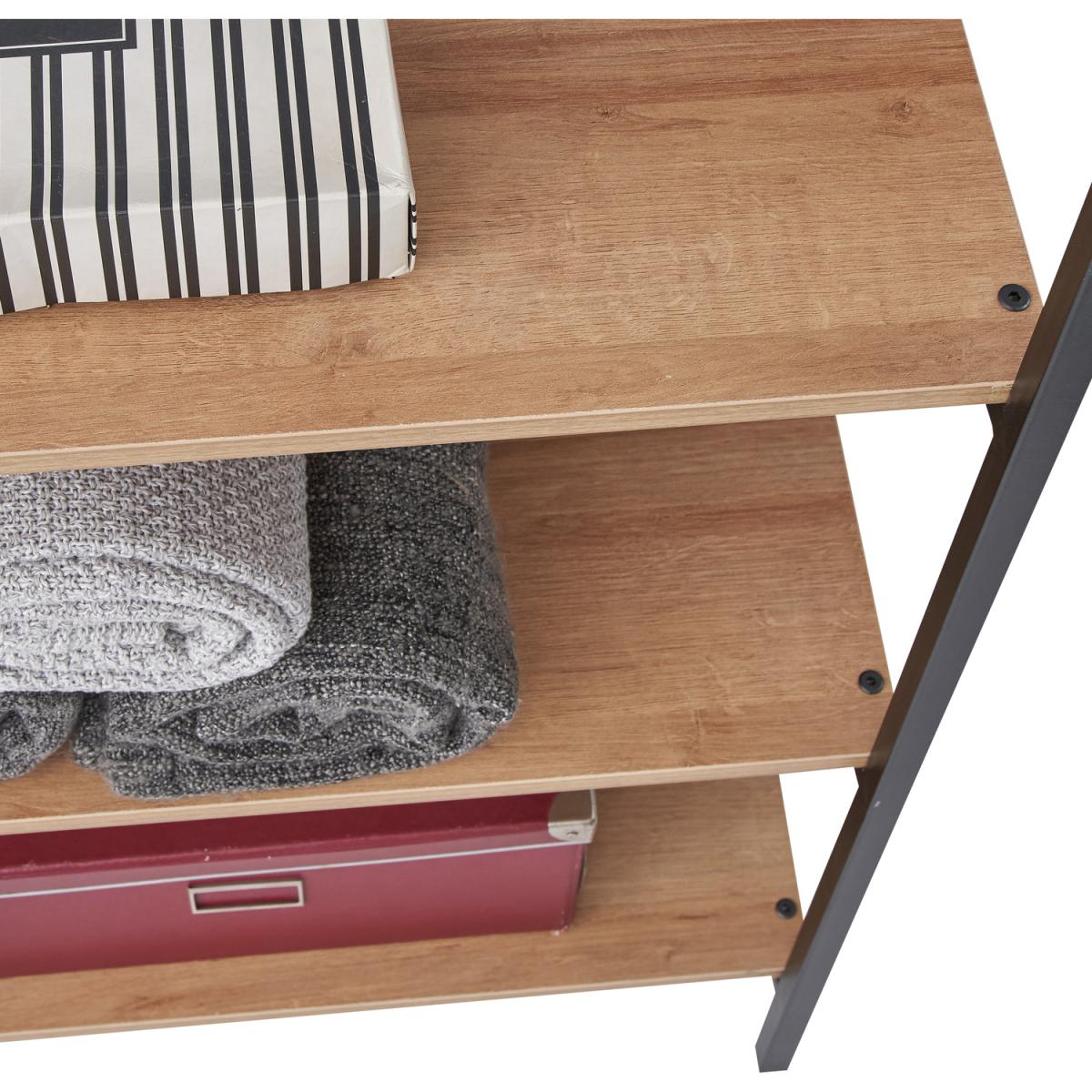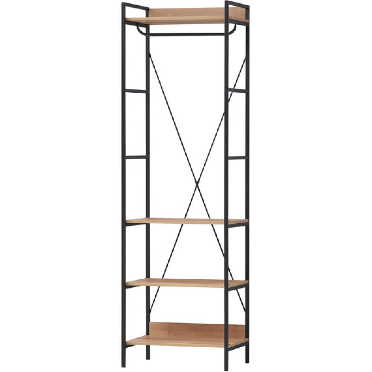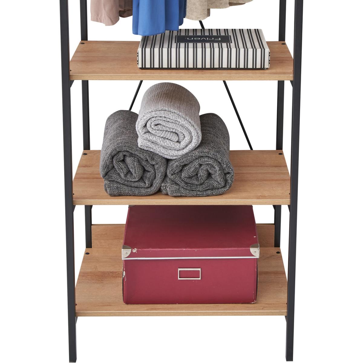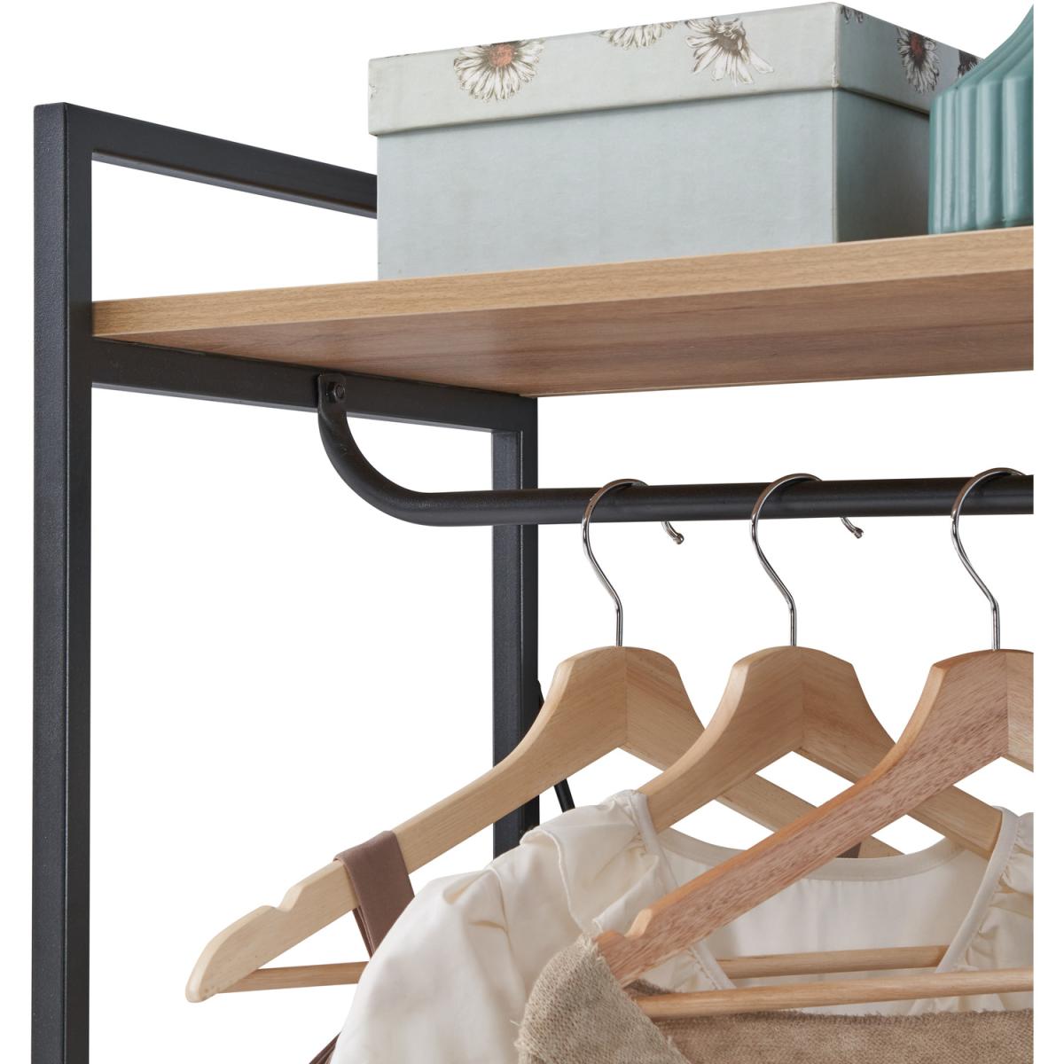 The Claire Bedroom collection will bring simple yet stylish storage to your home. Metallic Framework with a light wood effect finish. This Claire Open Wardrobe offers open storage and features a Light Oak Finish with Metallic Frames. This item includes a rail for hanging your shirts, suits, or dresses with an additional 3 shelves for extra storage. Hanging rail with additional 3 shelves Measures H200cm x W60cm x D40cm. Other matching items available. Light Oak Finish Part of the Claire Bedroom Range. Manufactured using particle board, each item comes flat packed for self-assembly at home. Please note that due to lighting and different devices you might be using, the colour in the image may vary slightly for the actual colour of the product