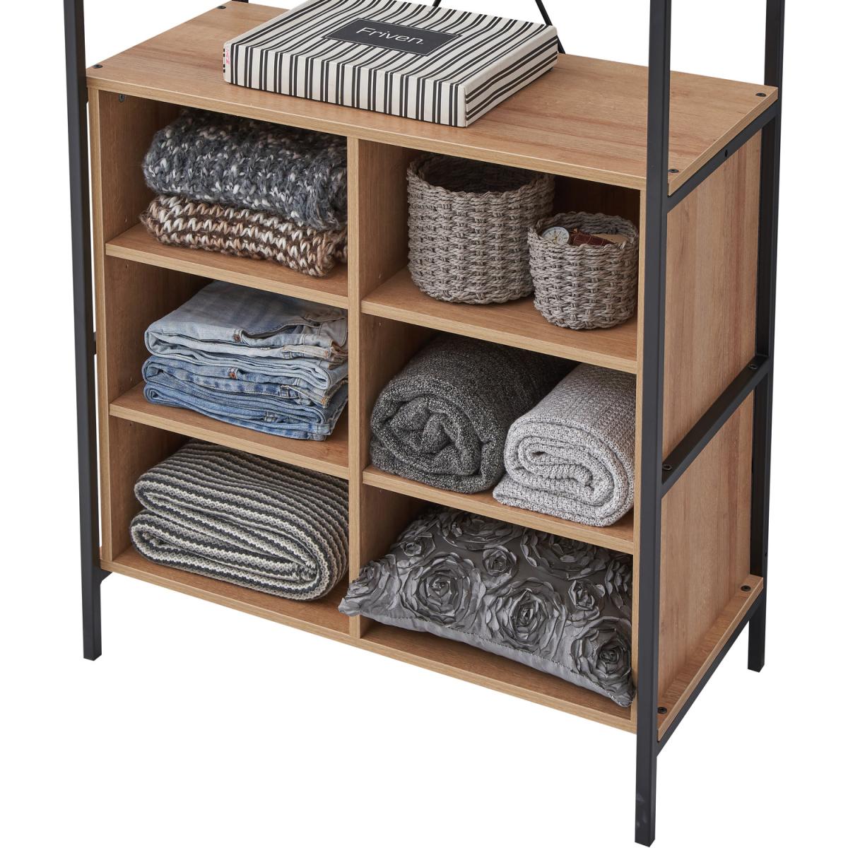 The Claire Bedroom collection will bring simple yet stylish storage to your home. Metallic Framework with a light wood effect finish. This Claire Open Wardrobe offers open storage and features a Light Oak Finish with Metallic Frames. This item includes a rail for hanging your shirts, suits, or dresses with an additional 8 shelves for extra storage. Hanging rail with additional 8 shelves Measures H200cm x W80cm x D40cm. Other matching items available Light Oak Finish. Part of the Claire Bedroom Range. Manufactured using particle board, each item comes flat packed for self-assembly at home. Please note that due to lighting and different devices you might be using, the colour in the image may vary slightly for the actual colour of the product.