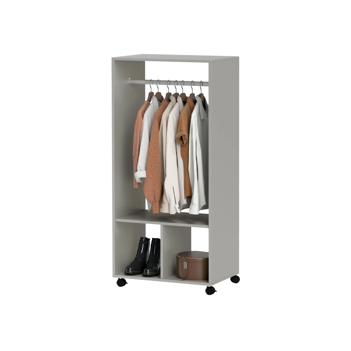 Open Wardrobe with Wheels and Storage Shelves - Grey