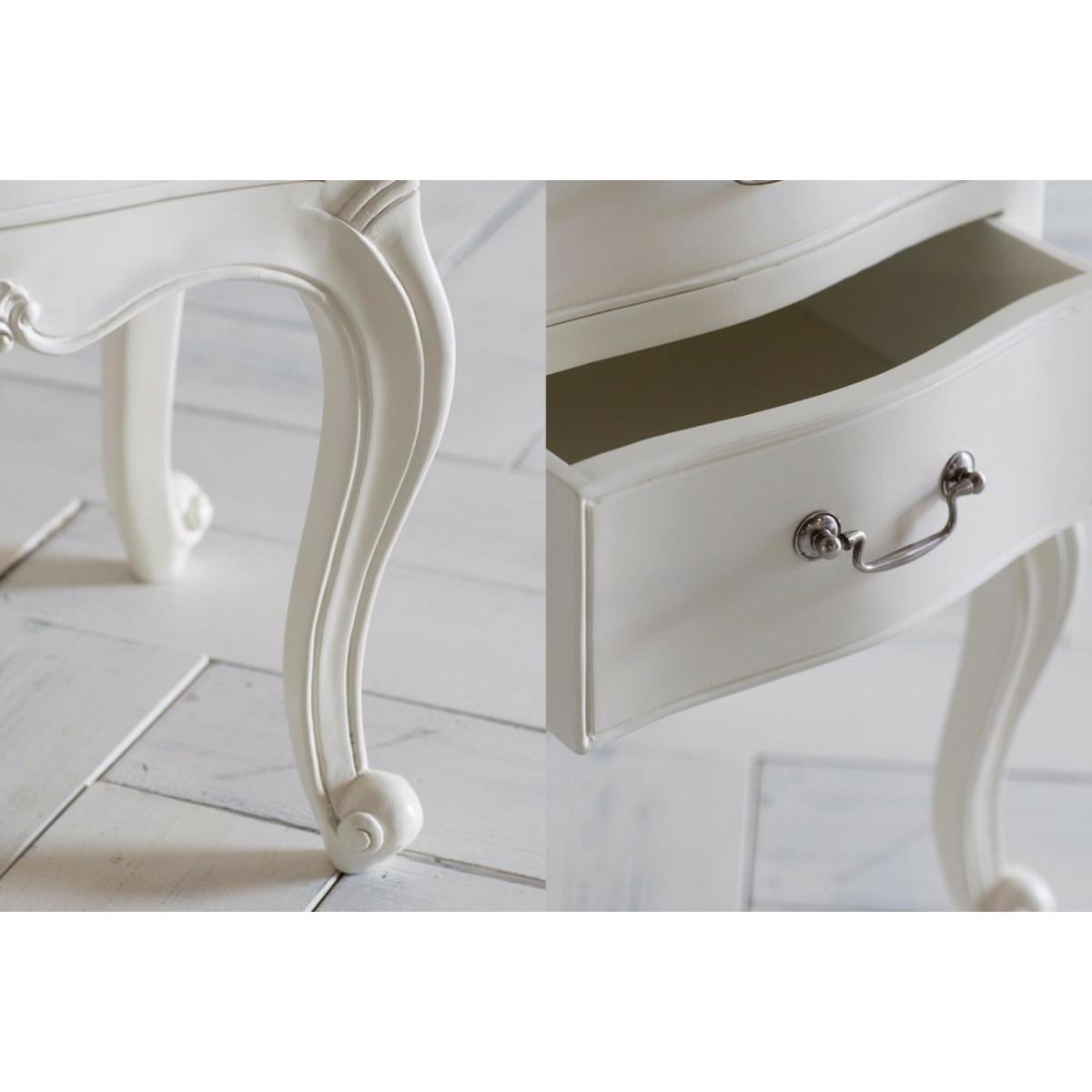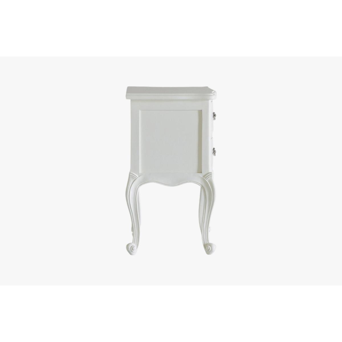 This vintage-inspired bedside table is perfect for adding a touch of elegance and charm to both traditional and eclectic bedrooms. I love the classic curved legs and delicate hardware which make it a lovely focal point without overwhelming the space. It works well in shabby-chic settings, French country styles, or even updated classics. Practical styling tips include layering with a small lamp, a decorative tray, or a stack of favourite books to enhance its look. For a more modern twist, pairing it with sleek textiles and minimal accessories can help balance its romantic silhouette. Overall, it’s a versatile piece that brings character and sophistication to any bedside arrangement.