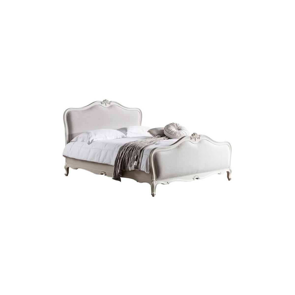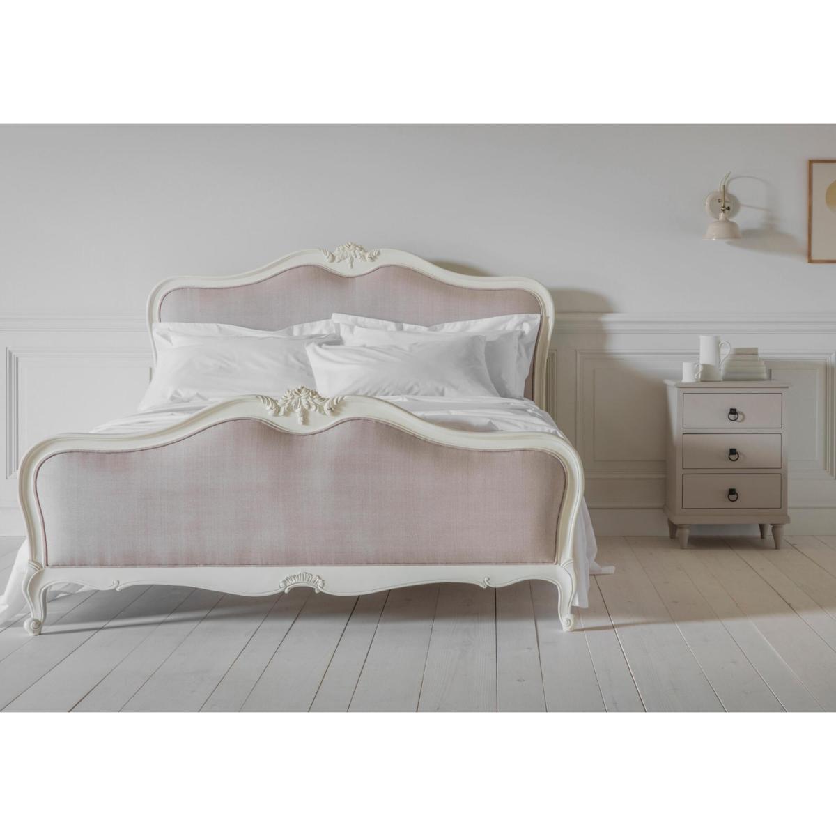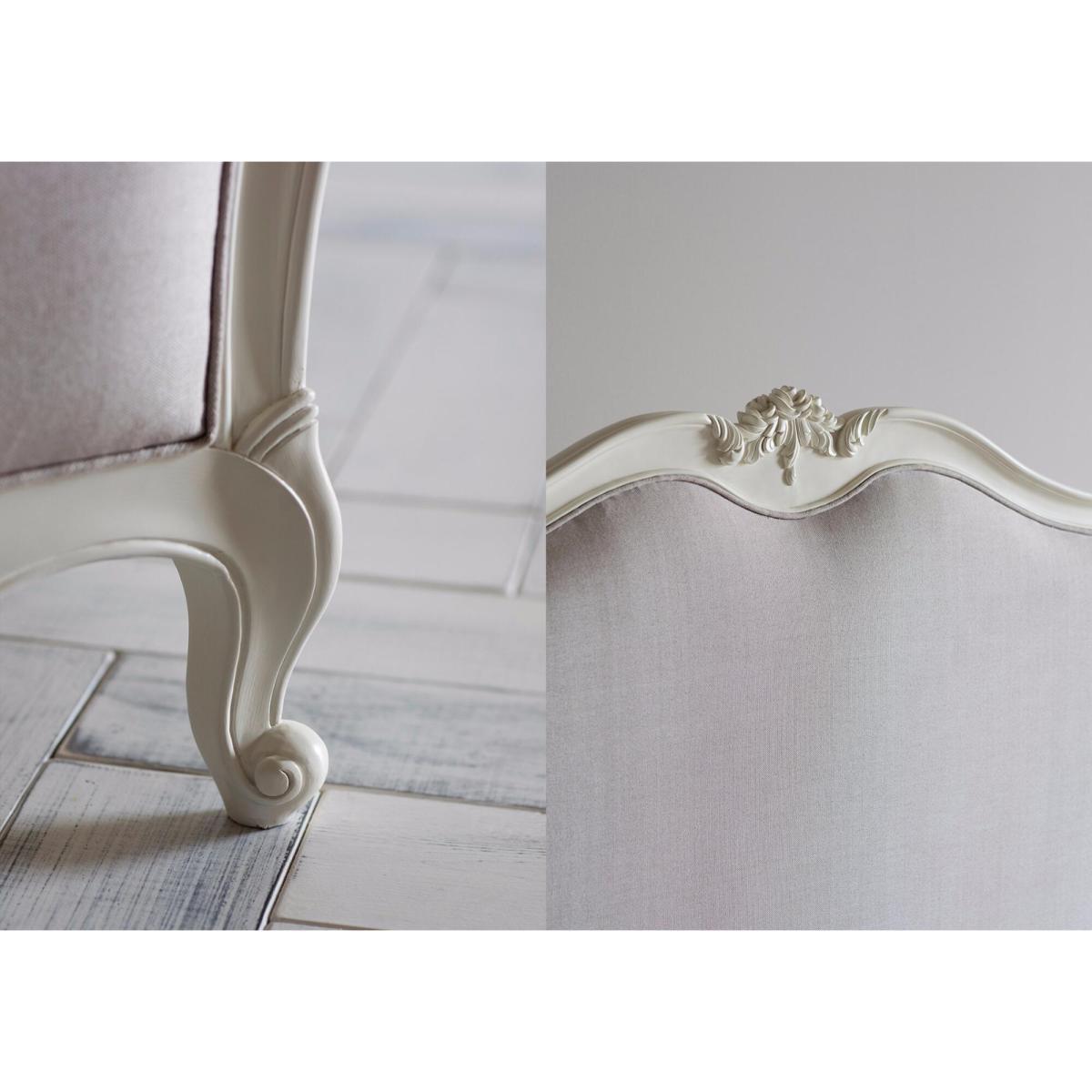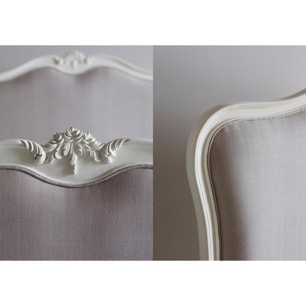Give your bedroom a stately look with the Opera king size bed. This elegant Mindy Ash bed, with upholstered feet and headboard in soft grey cotton, is inspired by the decadent Versailles palace and has a white finish throughout for a delicate look. Also available with a subtle weathered wood finish, the Opera is perfect for those who want to wake up every day in the most luxurious of settings. Discover: The Opera Range