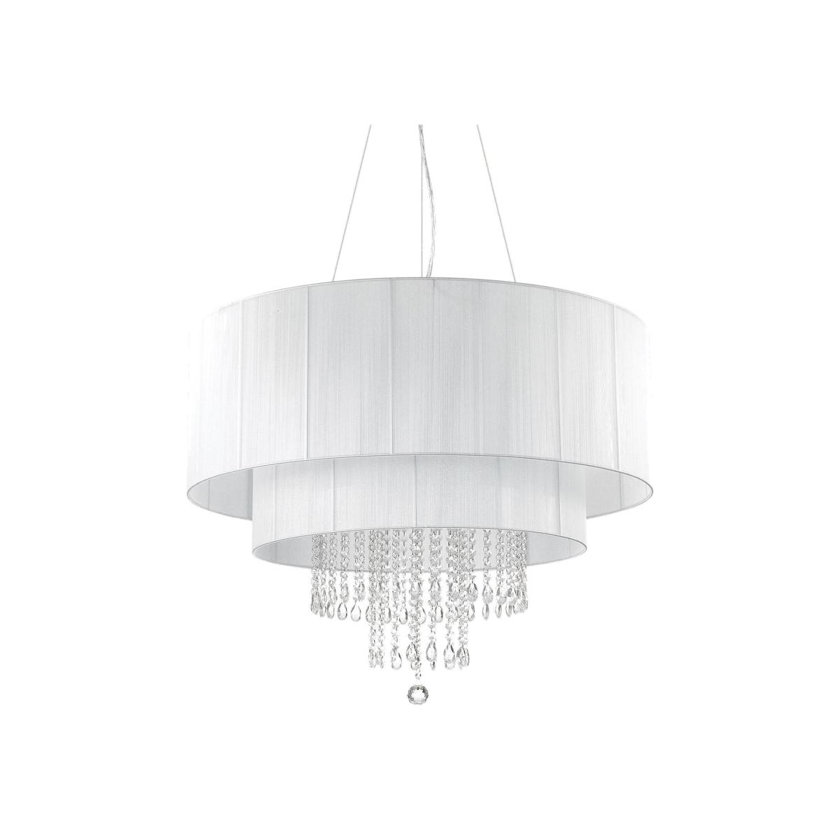 This beautiful, multi-tiered fitting will add class and glamour to the room. The fittings are manufactured with chrome frames, and a shade covered in metallic filaments. Decorated with cut crystal pendants which reflect the light, the fitting will cause a sparkle. The steel cables are adjustable in length. Available in more than one size, to provide the perfect fitting for the room. Class one.