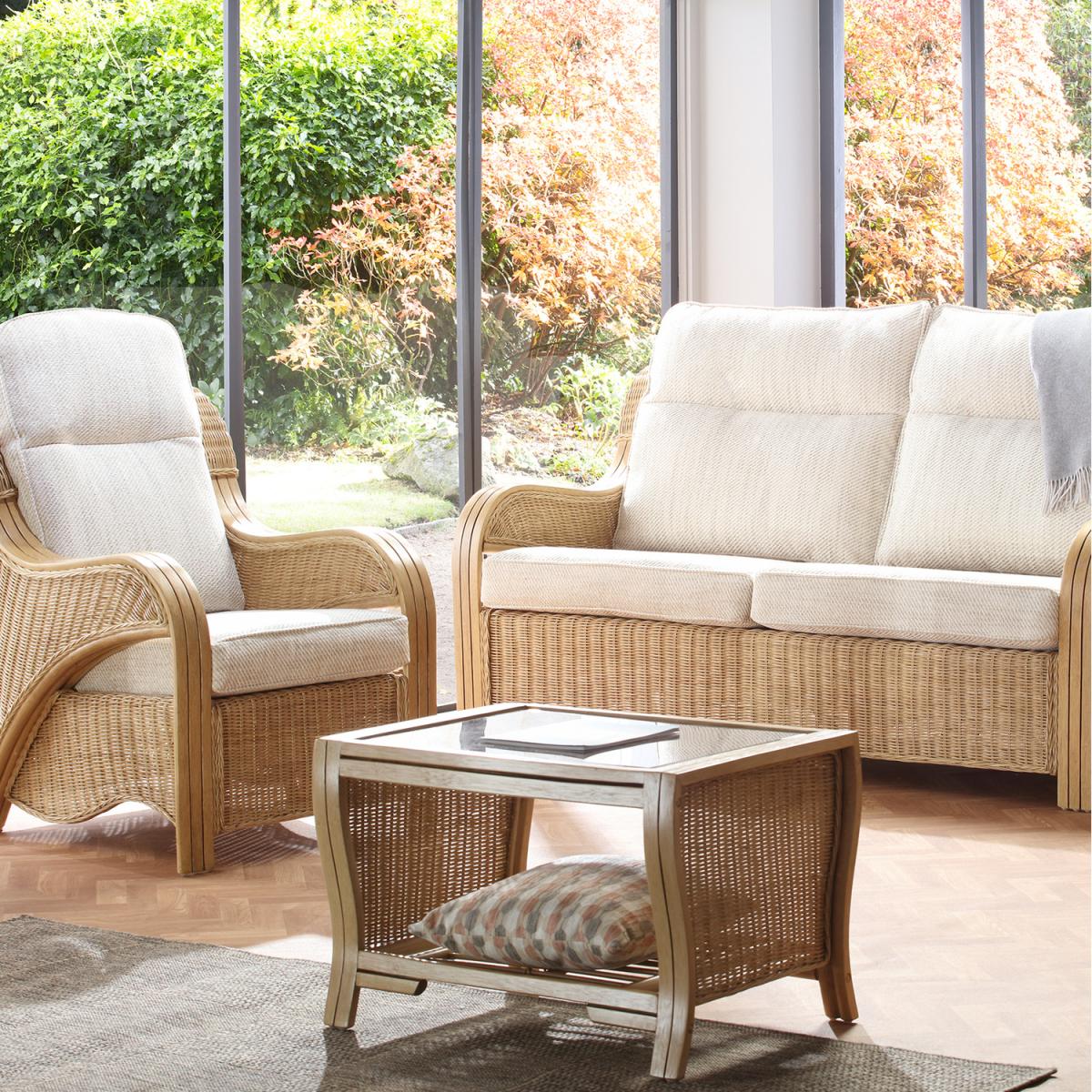 The Opera Coffee Table by Desser is a classic, comfortable, and timeless addition to any household. Different from the traditional indoor cane and rattan furniture, the coffee table fits in with the rest of the Opera light oak range impeccably but can also look great as a standalone item. Featuring a toughened glass top designed to hold your daily items such as cups, mugs, plates and any ornaments, the table also includes a lower storage shelf so that you can hide your books, newspapers, or magazines away. In a lovely light oak finish, the Opera Coffee Table features stunning cane weaving with 4 sturdy legs and wonderfully crafted woven sides all made from sustainably farmed materials. Beautifully handmade and ethically sourced rattan coffee table, perfect for the living room, conservatory, or garden room.