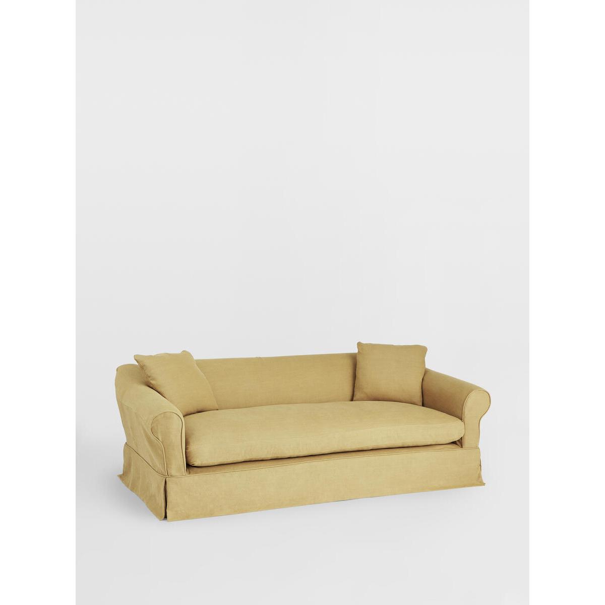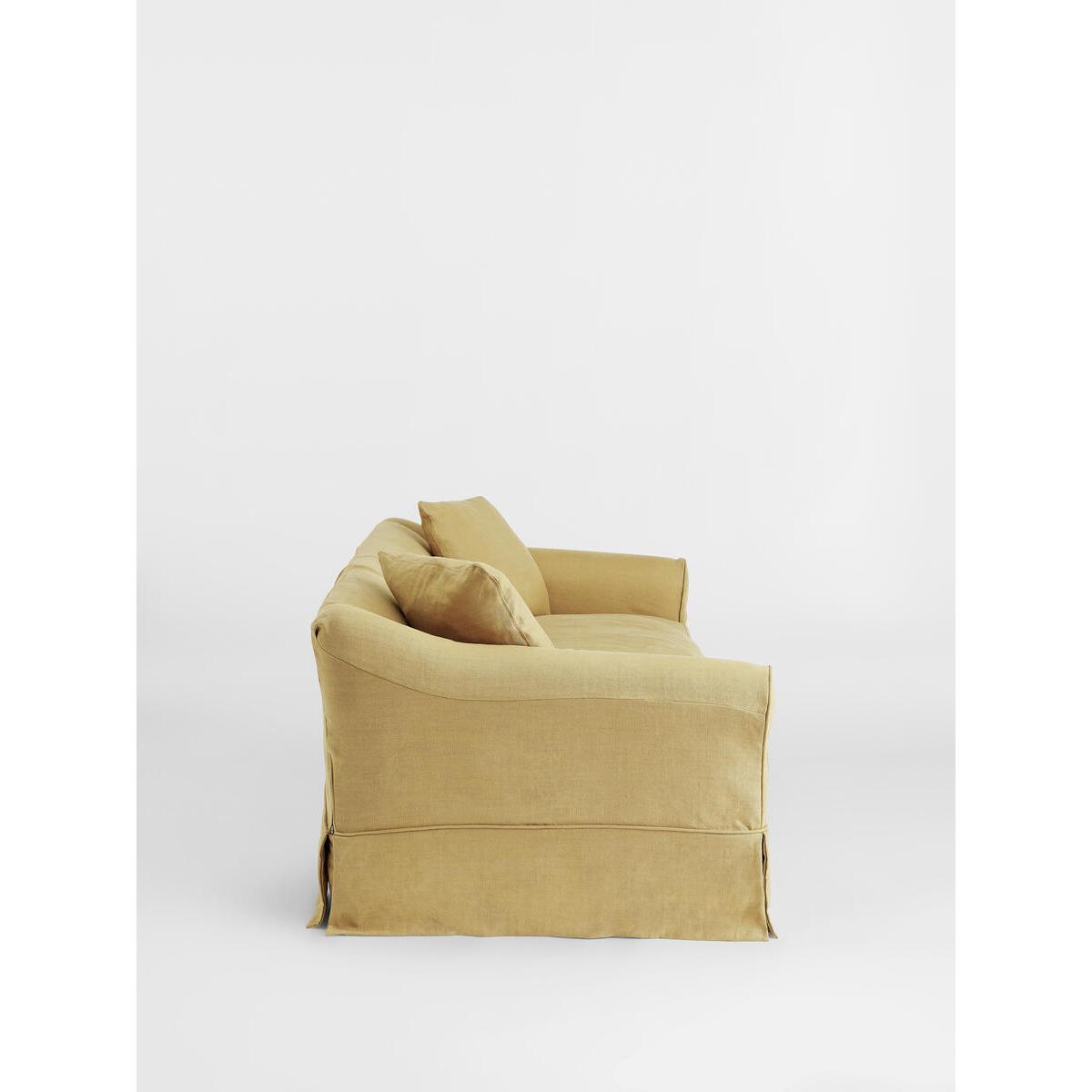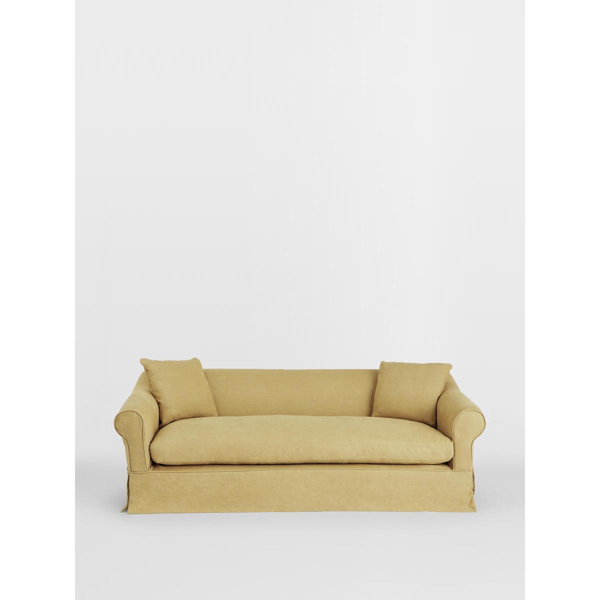 Create a calm living space with the Ophelia sofa, crafted from kiln-dried seasoned birch, with a pure linen slip cover for extra comfort. Made in the UK, the three-seater sofa is finished with feather-wrapped seat cushions that you can sink right into. We suggest pairing it with the Ophelia loveseat to bring the laid-back feel of Soho Roc House into your home. Linen three-seater sofa 100% tailored linen slip cover Extra deep seat Feather-wrapped foam cushions Inspired by Soho Roc House