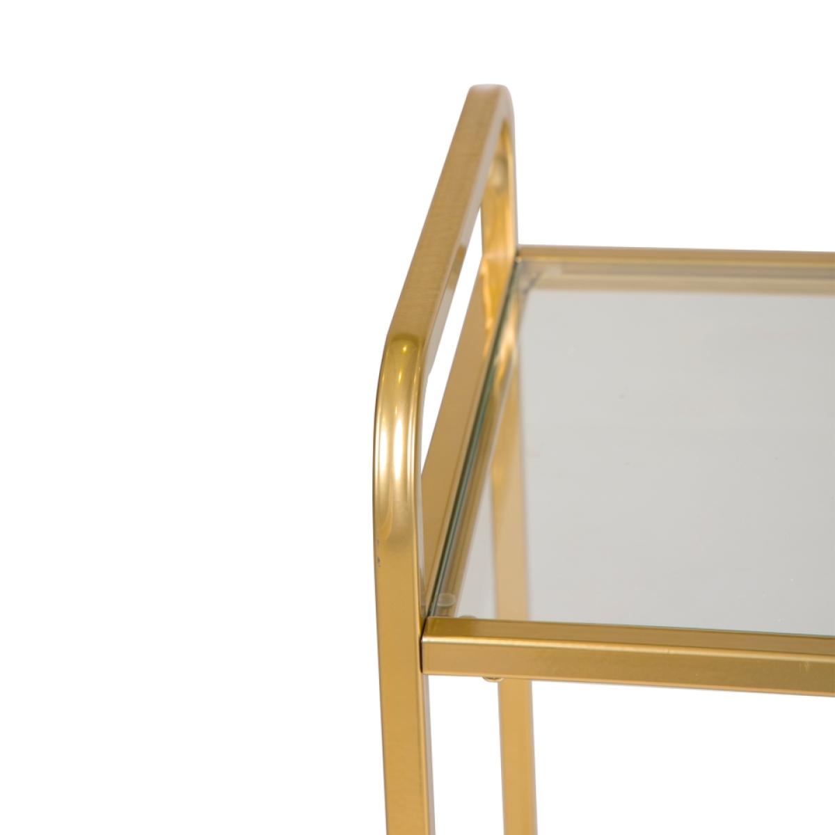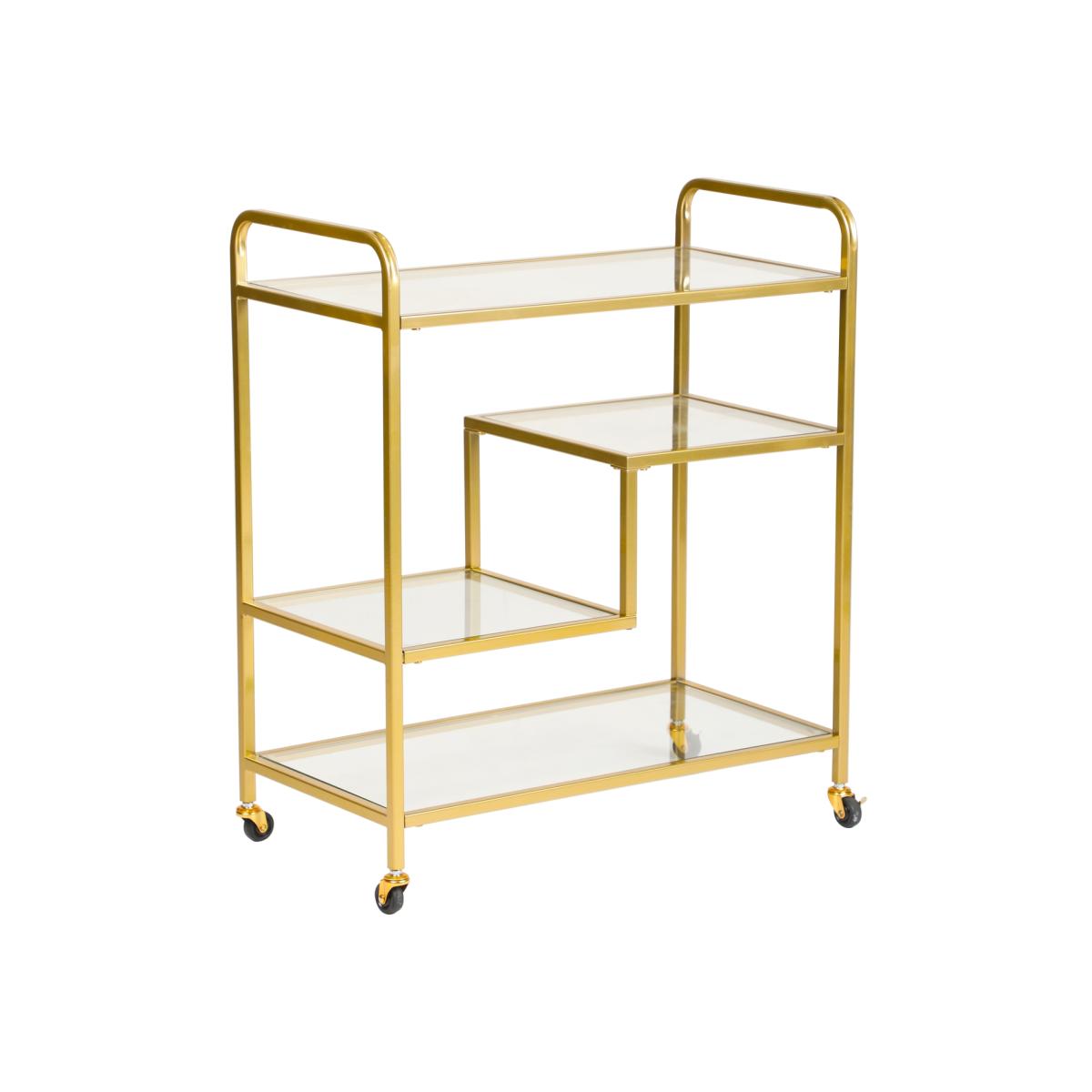 Aesthetically appealing, the Ophelia drinks trolley will make a glamorous statement to your entertaining space. The rich gold effect metal frame give this table a luxurious feel while the tempered and textured glass top will add visual interest. The Ophelia drinks trolly is designed to elevate your hosting experience along with elegance and practicality.