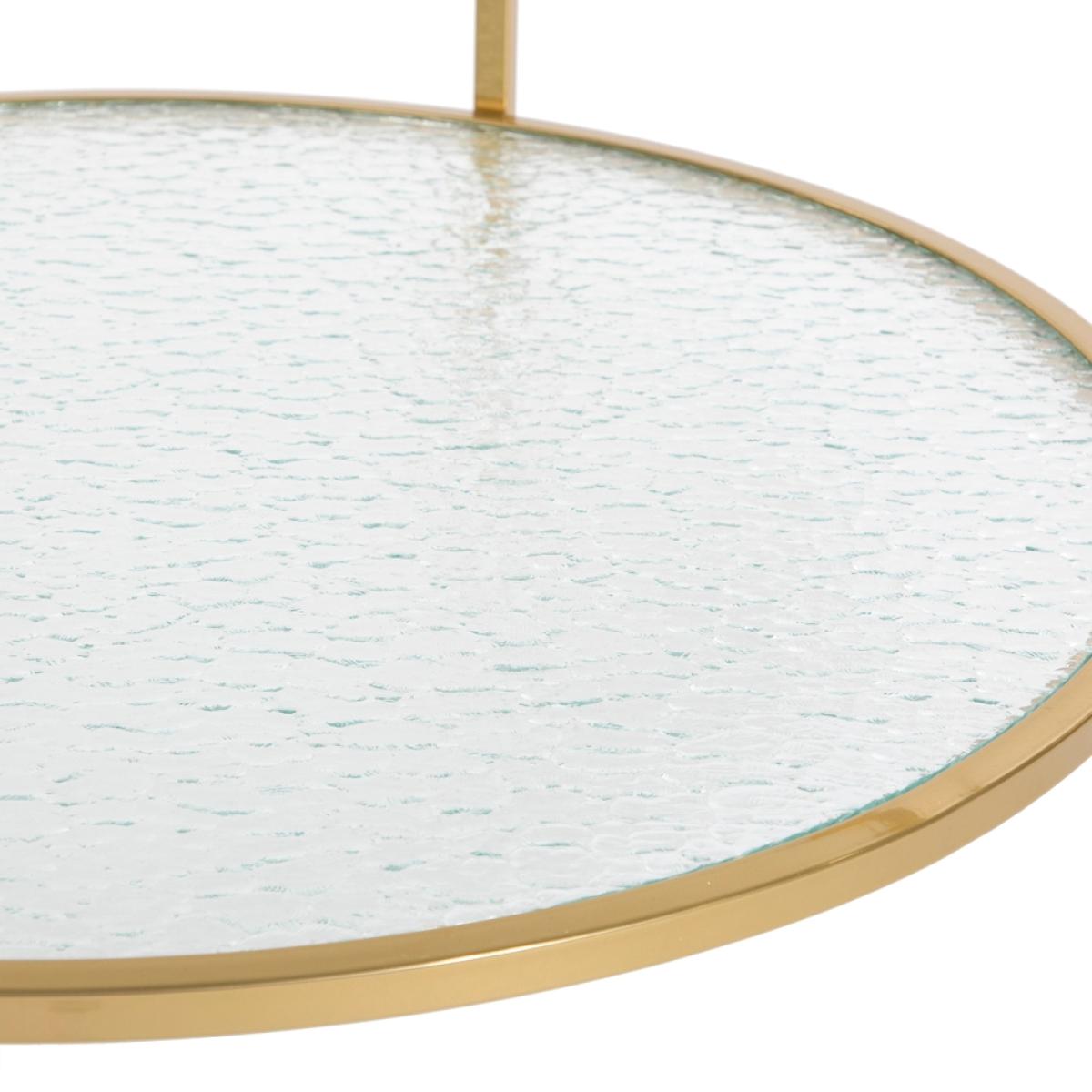 Aesthetically appealing, the Ophelia round coffee table will make a glamorous statement in your lounge. The rich gold effect metal frame give this coffee table a luxurious feel while the tempered and texture glass shelf add visual interest. The undershelf provides an excellent space to store books or magazines, to help you keep your living room organised.