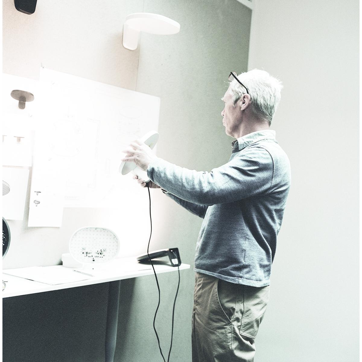 Defined by designer Jasper Morrison as the most obvious, definitive shape a wall light could be, the Oplight Wall Light embodies the form of a musical note on a pentagram, elegantly crafted by Flos. The light source derives from a board of LEDs covered with a ridged transparent panel, deflecting the light at angles away from the wall. An exercise in simplicity, the light works to emphasise the beauty of its surrounding architecture and space. An icon of British design and Designer of the Year at the Elle Decoration British Design Awards 2020, Jasper Morrison considers 'super normal' a term that defines good design. This refined aesthetic can be seen throughout his vast body of work. Characterised by their intelligent simplicity, Morrison's iconic designs exhibit refined minimalism and functional, clean-lined silhouettes. Requires: Integrated 16W LED Dimmable Bulb (included).