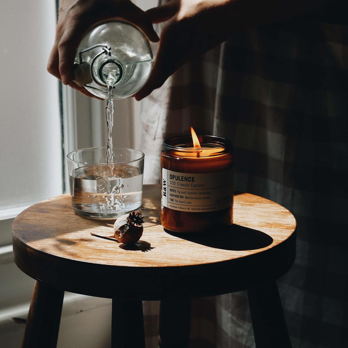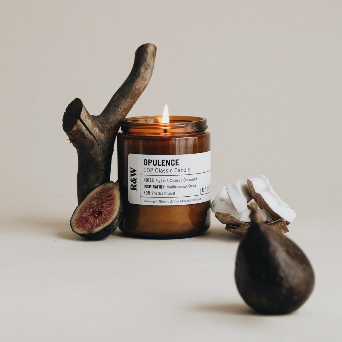 A scent that resembles the bright and exotic summer of the Mediterranean. Wild sun-soaked figs, a hint of milky coconut, a base of smoky vetiver and cedarwood blend perfectly to create an opulent aroma. Our most-popular size, the classic candle fits all occasions and fragrances every type of room or space. Made using 100% soy wax and set in an amber glass jar with a single cotton/linen mix wick, topped with an aluminium screw top lid. Enclosed within a signature Russell & White box, inspired by the hills in our hometown of Malvern.