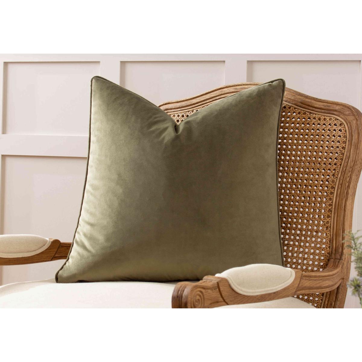 Simple and elegant, this sophisticated square velvet cushion is adorned with neat piping. You’ll love how soft it feels too, thanks to its high-quality feather filling. Why you'll love it This feather accent cushion is striking in its simplicity. In plush velvet with neat piped edges. Reverses to the same luxe fabric. In a choice of sophisticated colours. Made in the UK. This cushion is part of the Furniture Village home accessories collection. What you need to know For indoor use only. To maintain cushion plumpness, regularly turn, rotate and plump. Some fabrics can show wear on areas of more use or in direct sunlight. Clean regularly using a soft brush or vacuum with the curtain attachment. Deal with any spills promptly. Professional cleaning advised for oil- and grease-based stains. Please read our upholstery care guide for more advice. Dimensions Height: 55 cm (22 in). Width: 55 cm (22 in).