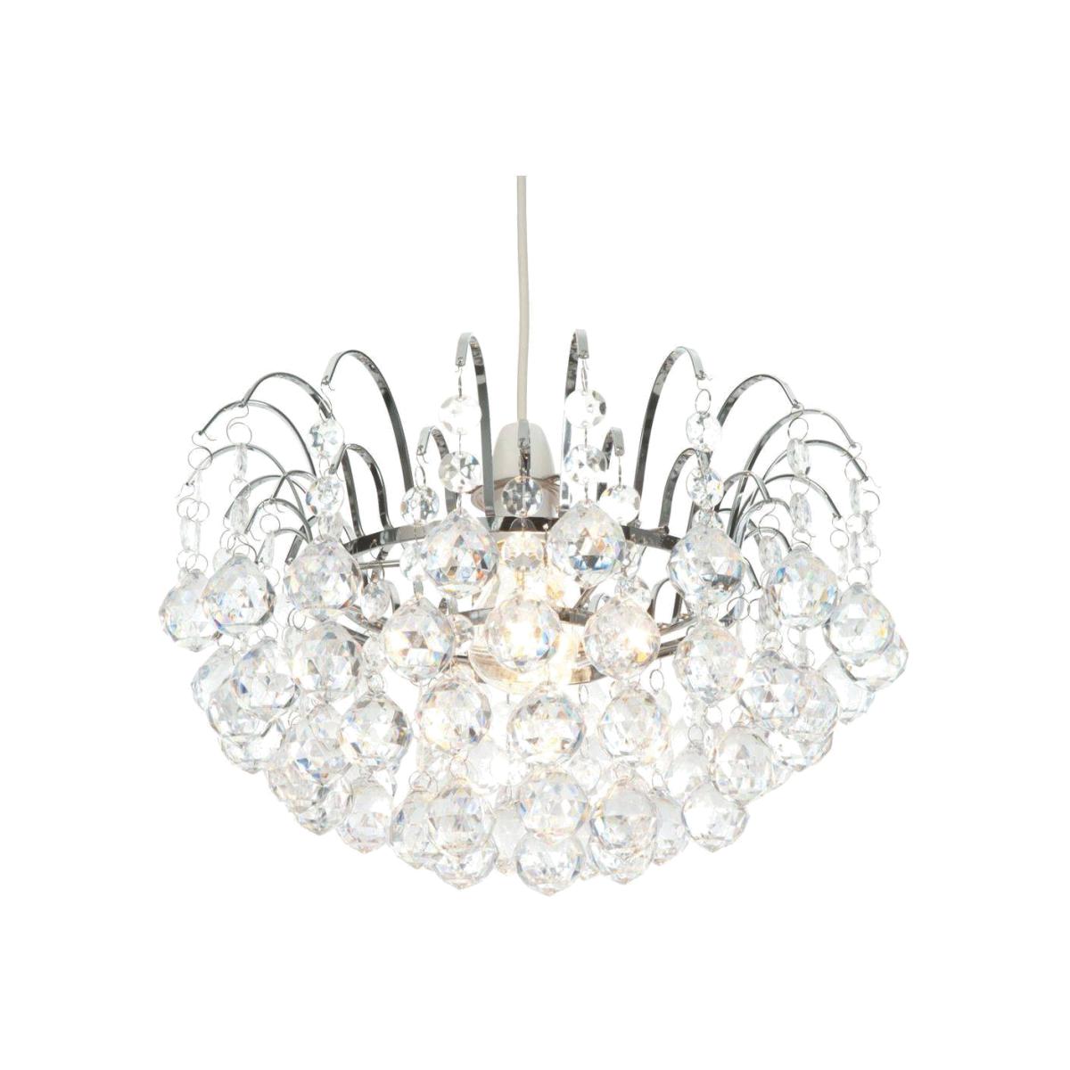 Ora Pendant Light Shade. Add a touch of elegance to your interiors with this stylish pendant light shade exclusive to PAGAZZI Lighting. The Ora Pendant Light Shade features large acrylic baubles that cascade from a polished chrome frame that give off a dazzling glow when lit. Ideal for updating your interiors without the need for an electrician.