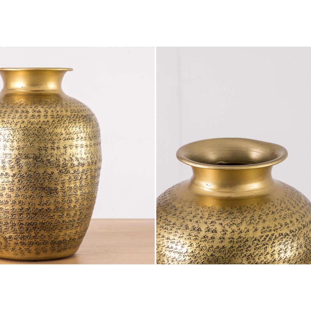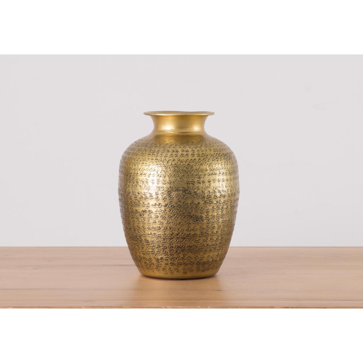 Simply stylish, the Ora Vase is sure to stand out in your home. With a classic urn shape crafted from Gold-toned Aluminium and with a hammered design running throughout, the piece is both functional and attractive as a practical vase or as a stand alone statement piece.