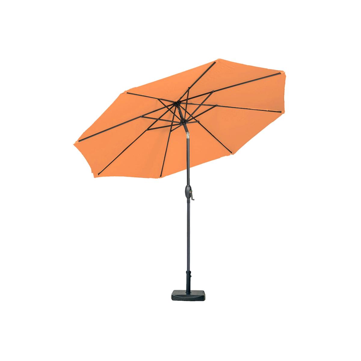 The Orange 3m Crank and Tilt Parasol can be used within your dining tables or as a free standing parasol provided you use a weighted base (not included) to keep the parasol in place. This product features an easy to operate crank and tilt system which will help you to adjust the canopy position when required.