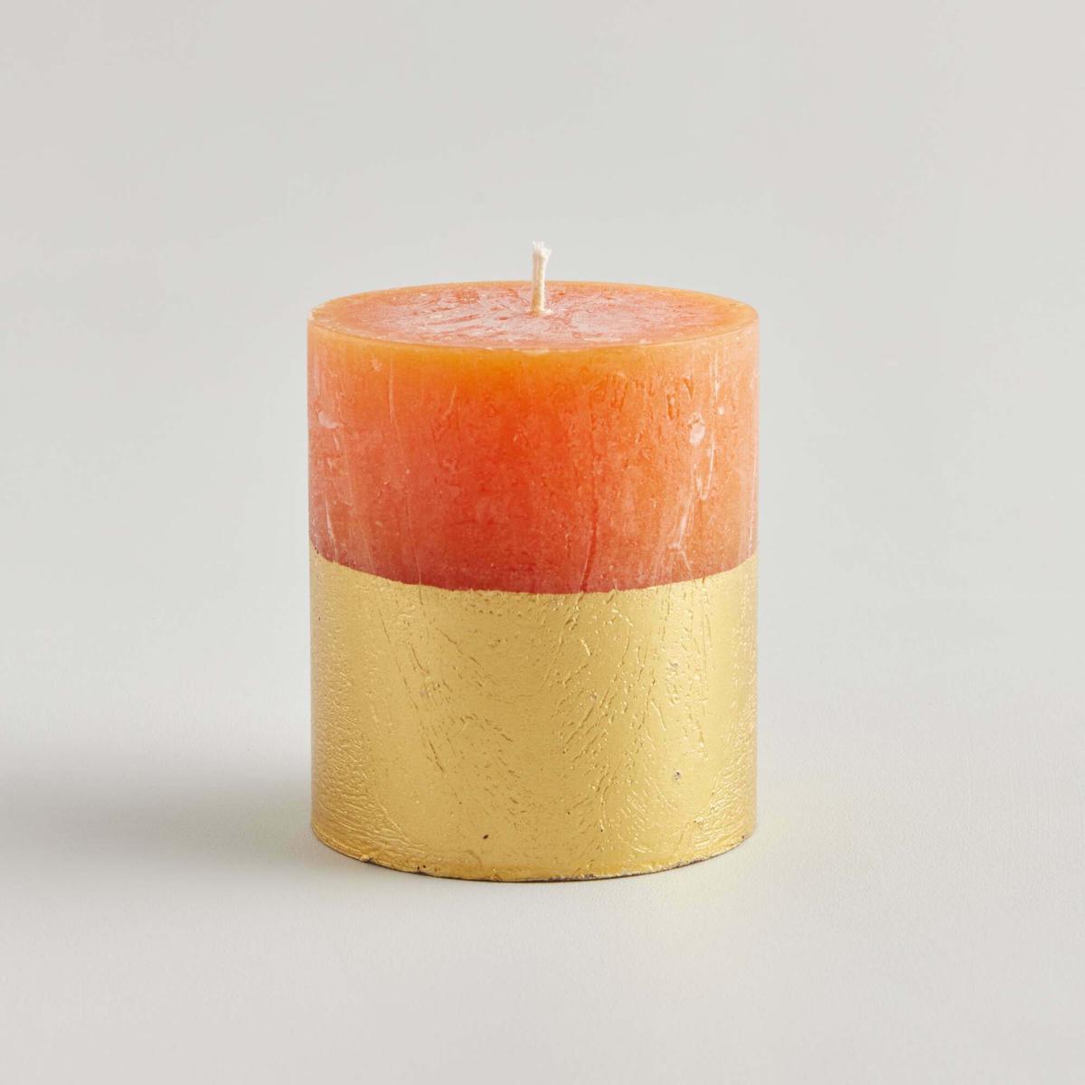 Orange and Cinnamon Gold Dipped Pillar Candle