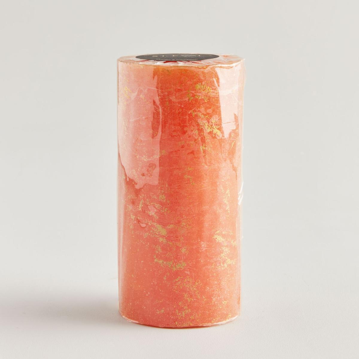 Orange and Cinnamon Gold Marbled Pillar Candle