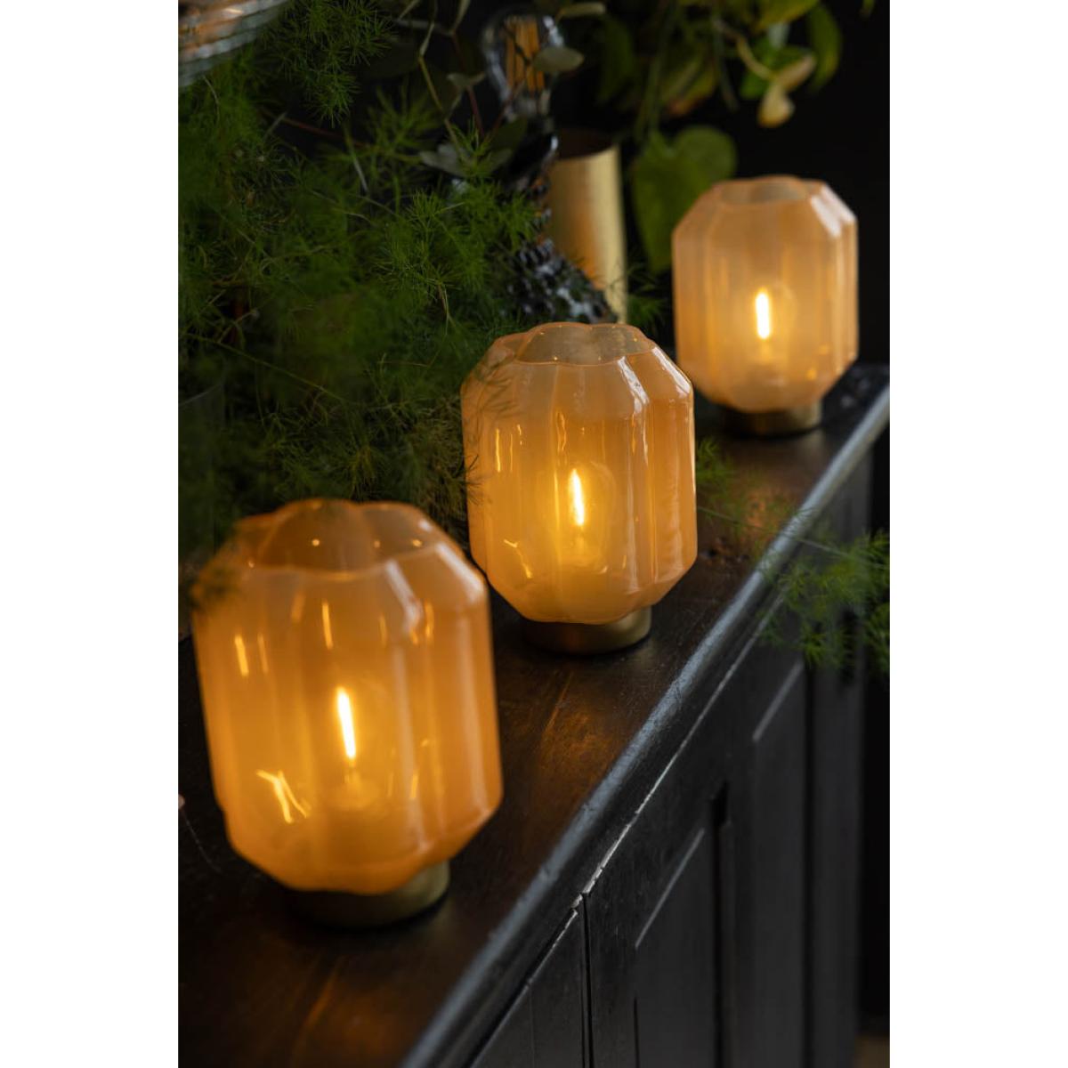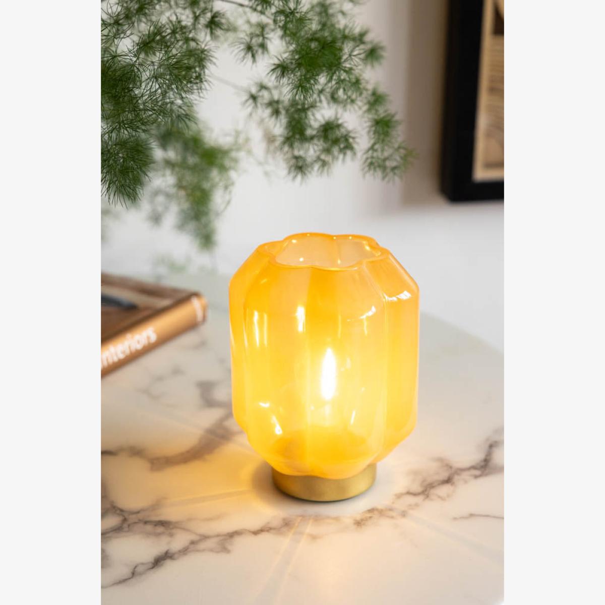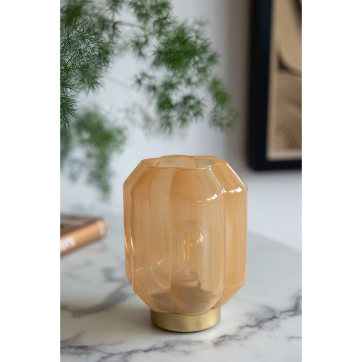 Here at RSG, we’ve never met a lamp we didn’t like, and this little beauty is no exception. The opaque quality of the glass gives this a smoky appearance when off, and a soft, luminous glow when switched on. It’s battery operated, which makes it brilliantly portable, too – simply take it with you wherever you feel moved to light up your life. Style this art deco-inspired piece against a wooden sideboard, console or table or use instead of candles in the bathroom – no electrics make it a much safer option for achieving that relaxing (or romantic!) ambience. Beautiful. - Orange & Gold Battery Powered Table Lamp - Measures: H16.5cm x Dia. 13cm - Material: Glass - Battery requirement: 2 x AAA. Batteries are fitted in base.