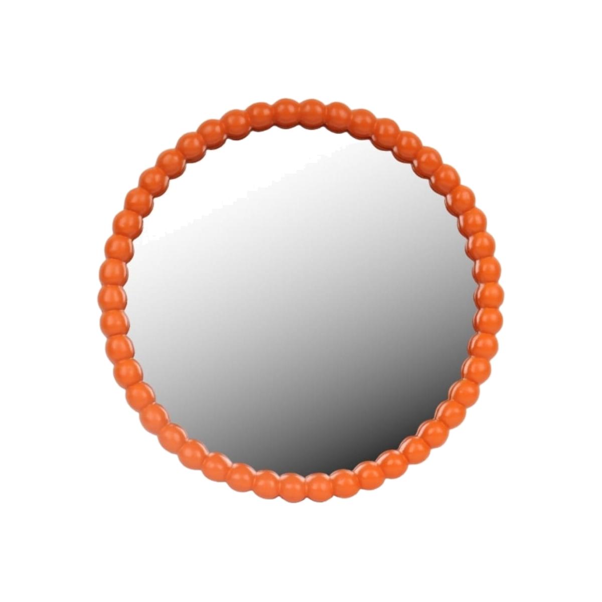 I love this round mirror with its vibrant orange beaded frame; it instantly adds a playful yet sophisticated touch to any space. It works particularly well in eclectic or contemporary interiors, where a pop of colour can bring warmth and personality. To style it effectively, consider placing it above a console or sideboard to create a focal point, or use it in a grouping with other mirrors for a dynamic wall display. Practical tip: its size and shape make it versatile for small spaces like a bathroom or narrow hallway, where it can brighten and enlarge the area without overwhelming. Overall, it’s a joyful piece that combines function with a bold decorative statement.