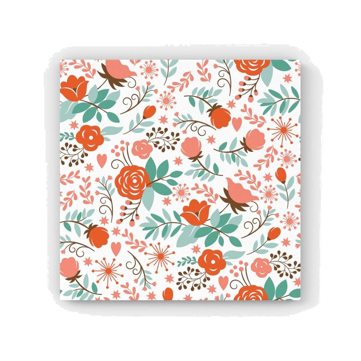 Orange Floral Pattern HD Metal Print - Green / 30cm