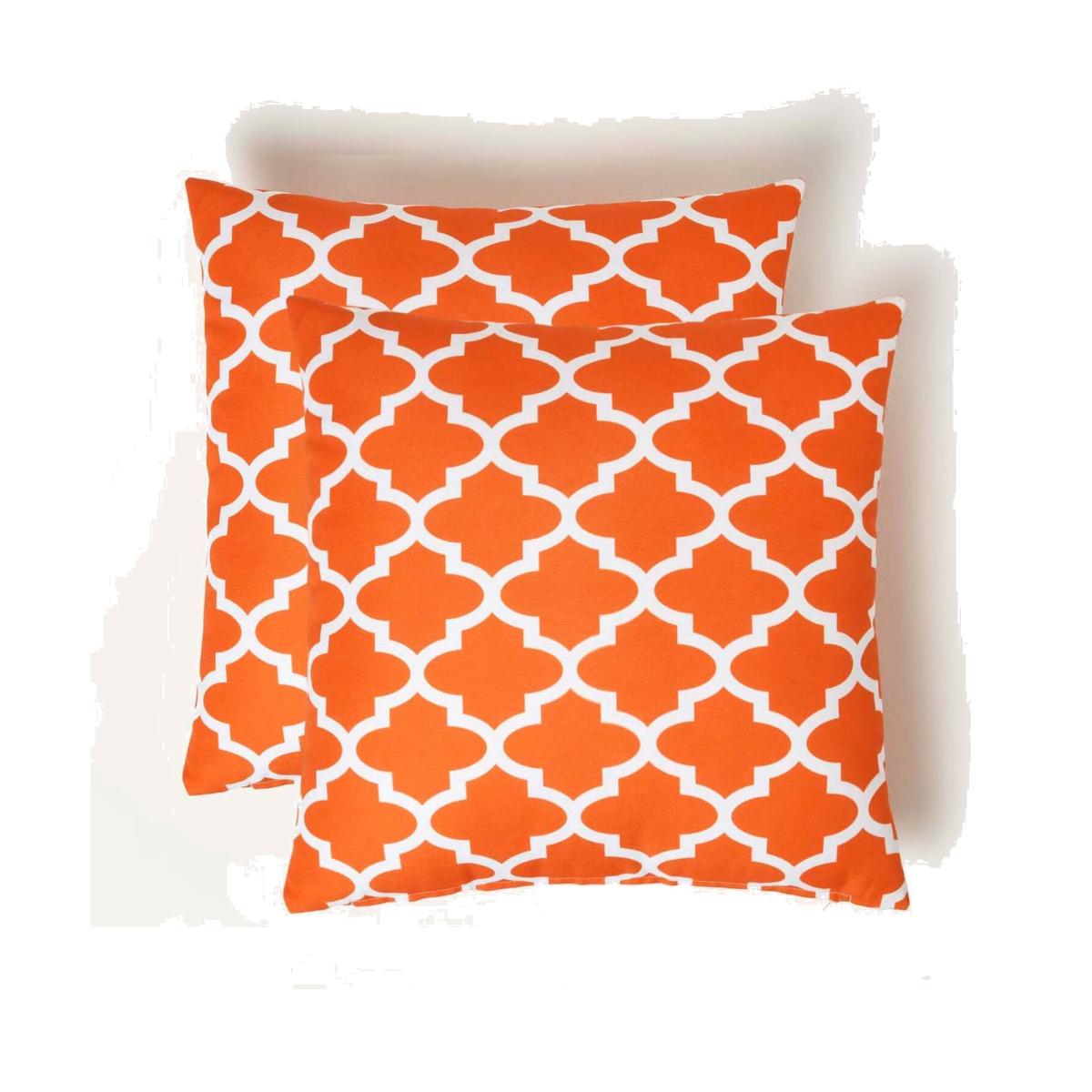 Two vibrant orange garden cushions measuring 45 x 45 cm. These bold decorative outdoor cushions feature a contemporary style geometric pattern and will add a splash of colour to your garden. Co-ordinating with our Nola black garden rug, this bold outdoor cushion will complement all garden styles and add a touch of fun to your outdoor space. Woven from a thick and durable water-resistant polyester, these durable cushions are perfect for styling outdoors. And provide extra comfort and support to your garden chairs, garden sofas and benches. A versatile cushion they can be used around your outside spaces as well as in conservatories, summer houses or even around the home. Prefilled with a bounce-back, super microfibre hypoallergenic cushion insert these cushions will remain plump and comfortable even with regular use. We recommend that you always store your cushions indoors when not in use and keep them out of direct sunlight and heavy rain. Spot clean with mild soapy water and leave to dry naturally. Part of Homescapes exclusive garden and outdoor accessories, the collection includes garden seat pads and bench cushions, garden accessories and a colourful range of outdoor rugs available in a range of colours and sizes.