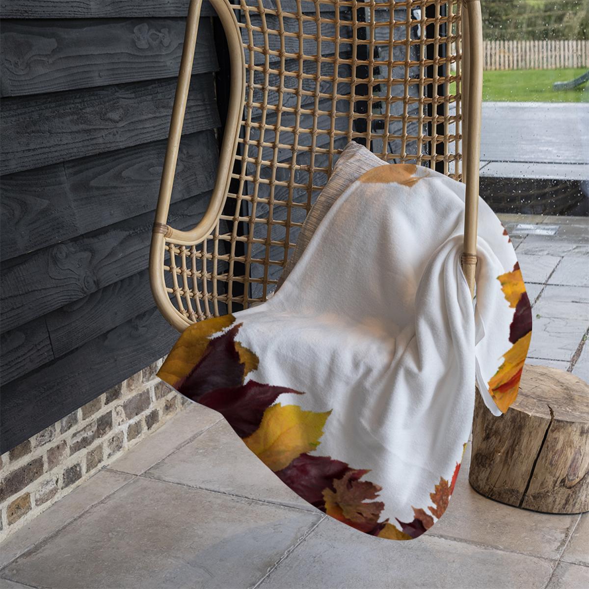 I love the vibrant autumnal tones of this throw, which make it a perfect accent for a cosy living space or bedroom, especially in rooms with neutral or darker colour schemes. Its warm oranges and deep purples add visual interest and seasonal charm without overwhelming the decor. For styling, drape it casually over a sofa or bed, or fold it neatly at the foot to introduce a splash of colour. It's also excellent for layering with other textiles, such as knitted throws or textured cushions, to create a warm, inviting atmosphere. This piece lends itself well to both contemporary and rustic interiors, where its lively hues can truly stand out.