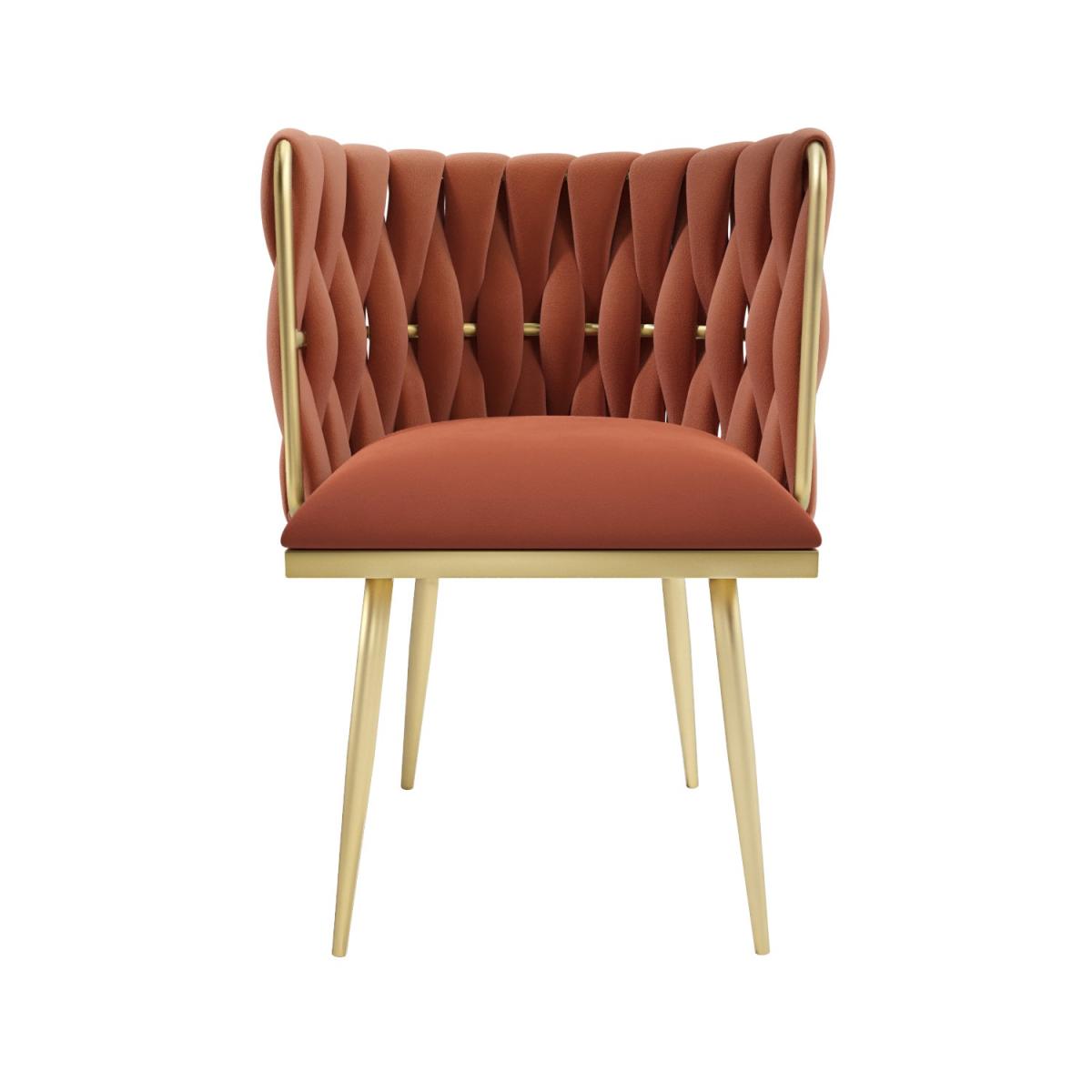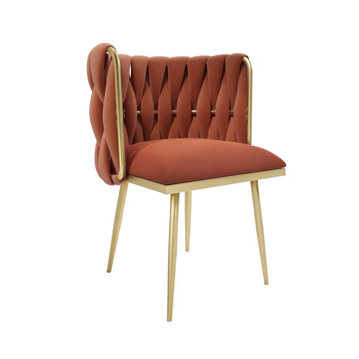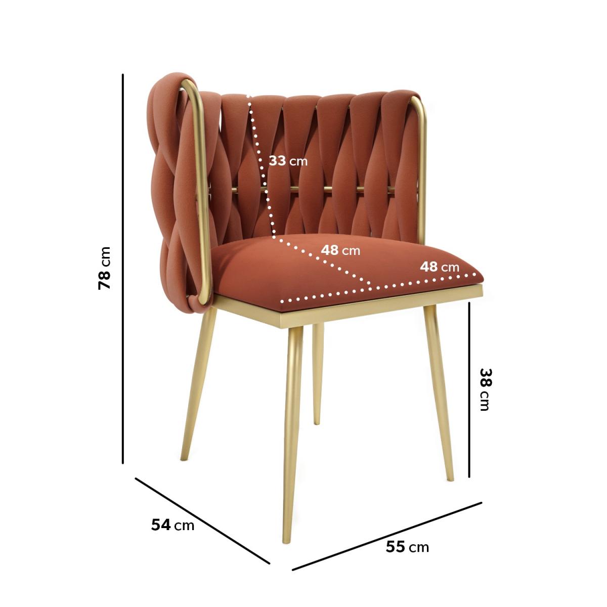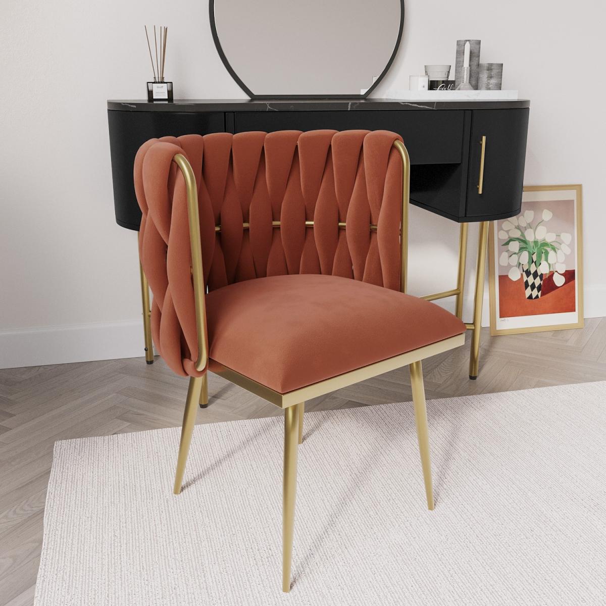 This beautifully designed chair makes the perfect addition to any bedroom or living space, adding a sophisticated and elegant touch. With a chunky weave back in rust-orange velvet and a contrasting gold frame, it makes a striking statement next to any dressing table. Thanks to the foam-filled seat base and backrest, it's comfy, too. There's minimal assembly, just secure the legs in place and it's ready to use.