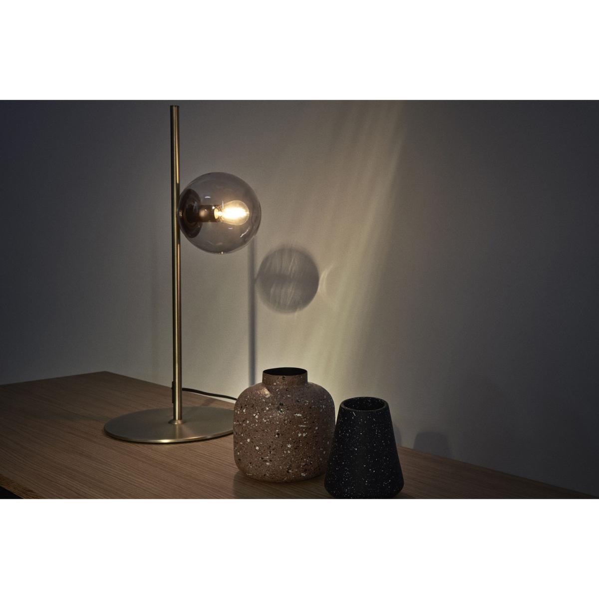 The slender Orb lamp is made up of a fine brass rod decorated with a luminous pearl. This delicate globe is slightly tinted for a subtle vintage effect. Elegant down to the smallest details, this lamp (H 57. 2 cm) is equipped with a fabric cable. It will create a mood that is both sober and casual which will give charm and character to your living area.