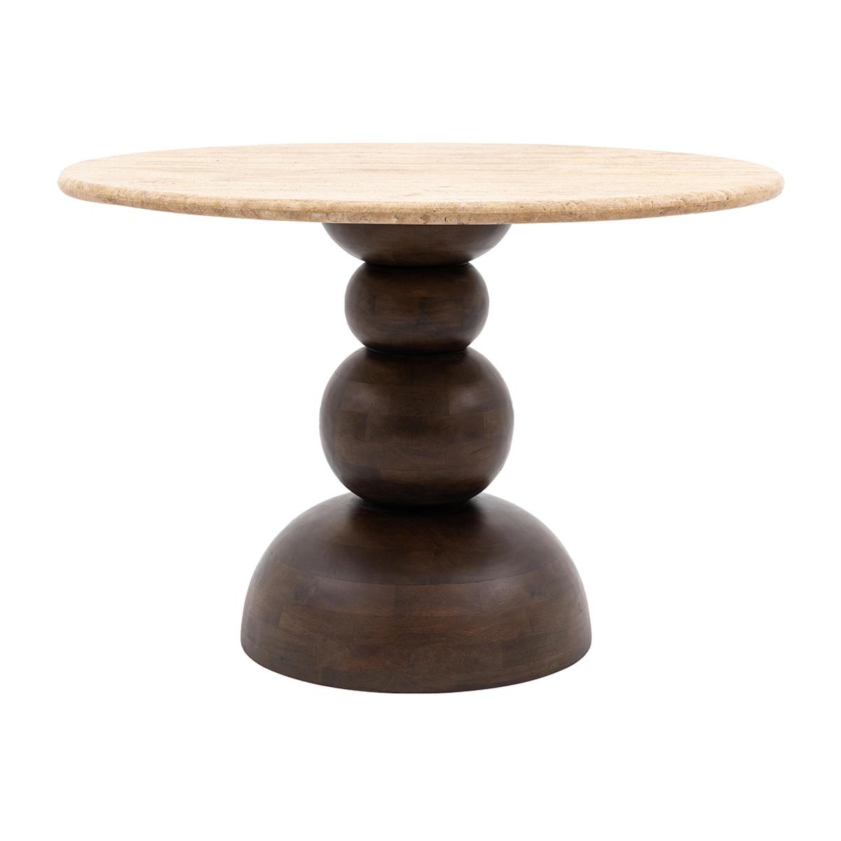 Redefine your space with the Orb Round Dining Table. The dark mango wood adds a luxurious warmth to the home and the curved round base add a unique touch. With a spacious tabletop.