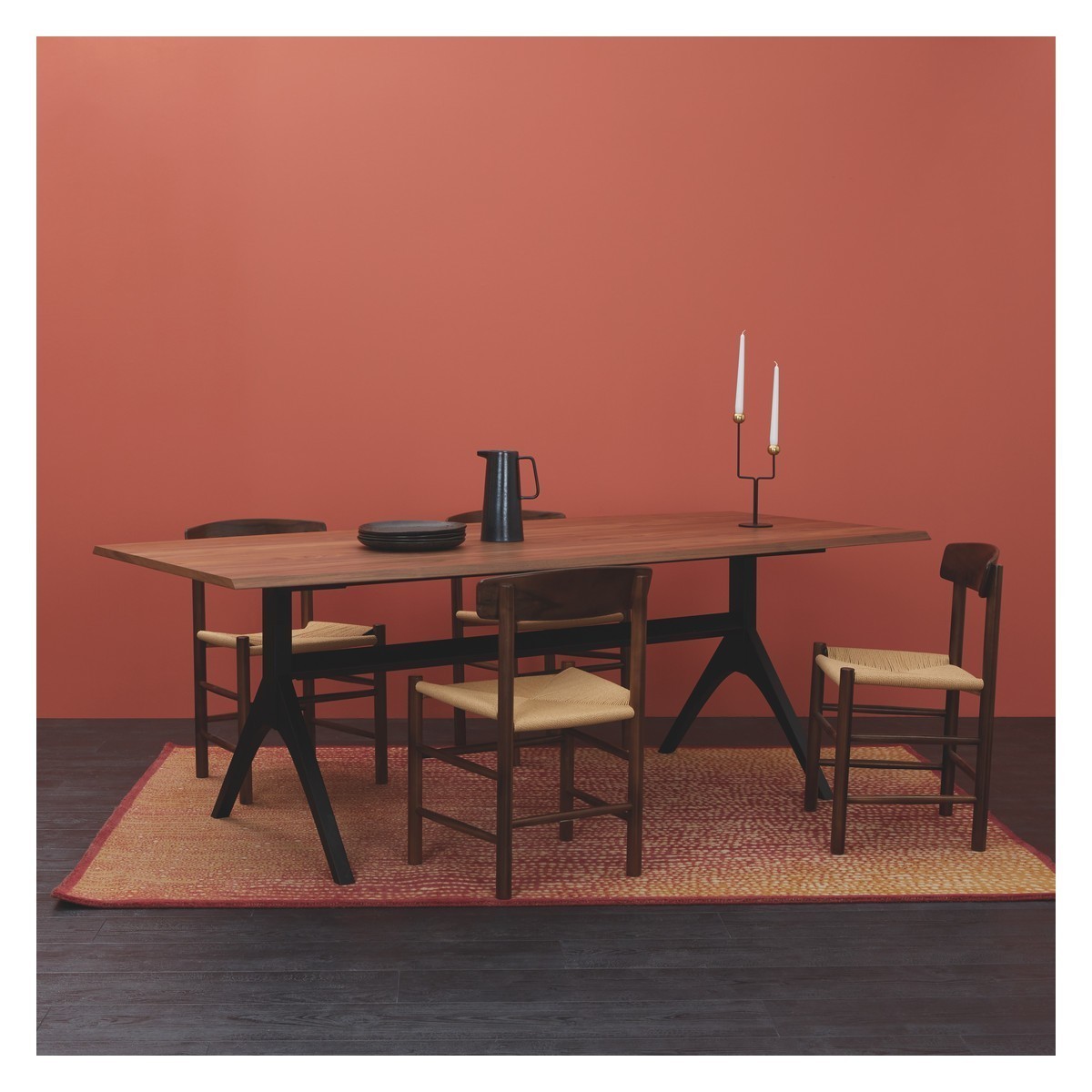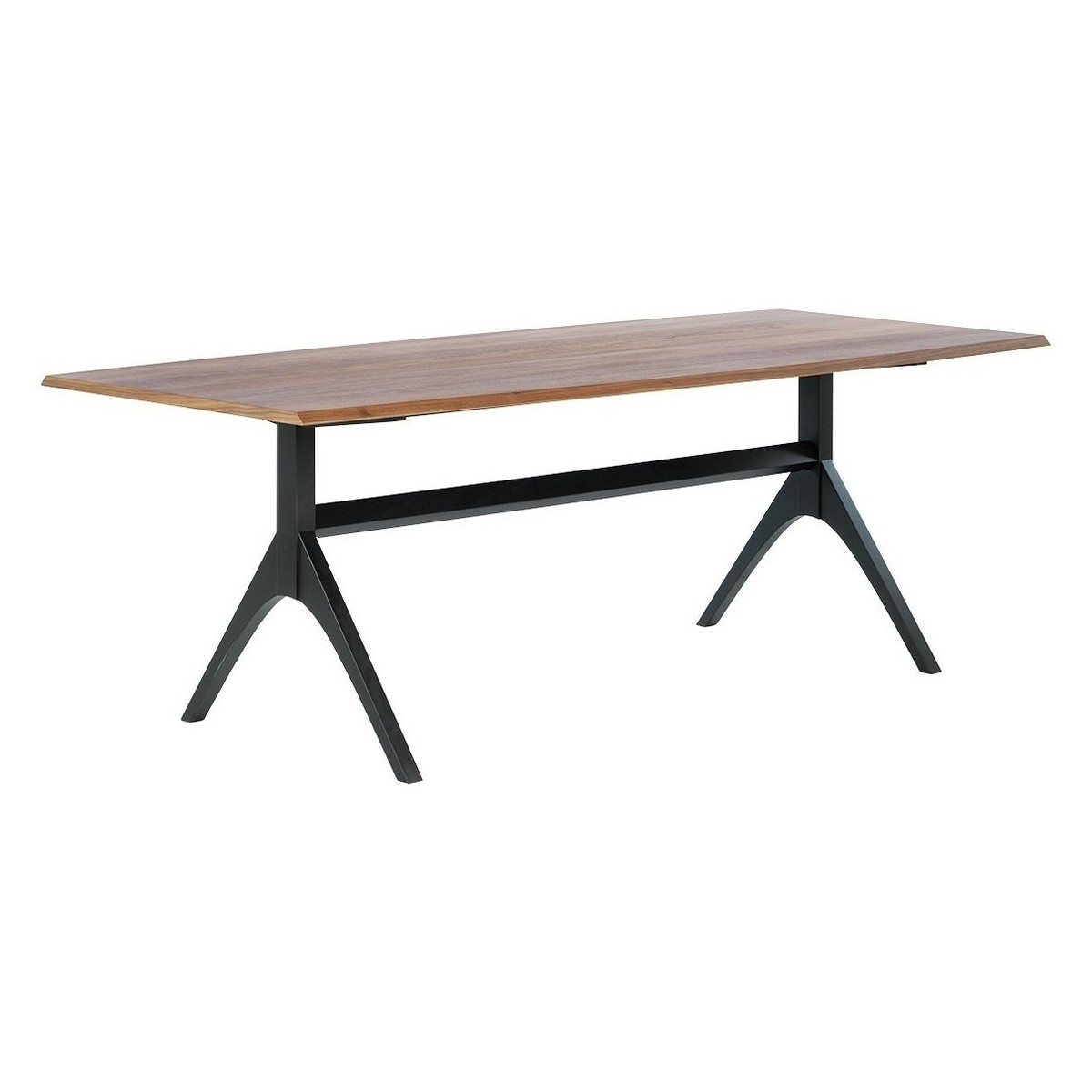 Make a statement with our contemporary Oregan 10 seat dining table, crafted from solid walnut and walnut veneers and finished with black-painted oak legs for a modern industrial look.;Designed in house and exclusive to Habitat, design details include subtle curves and chamfered edges. Complementing most decors, this table will look just as at home in a relaxed kitchen setting or a formal dining room.;This table is also available in solid oak and oak veneers. Complete the look with the Oregan dining chair which is available in a variety of finishes.