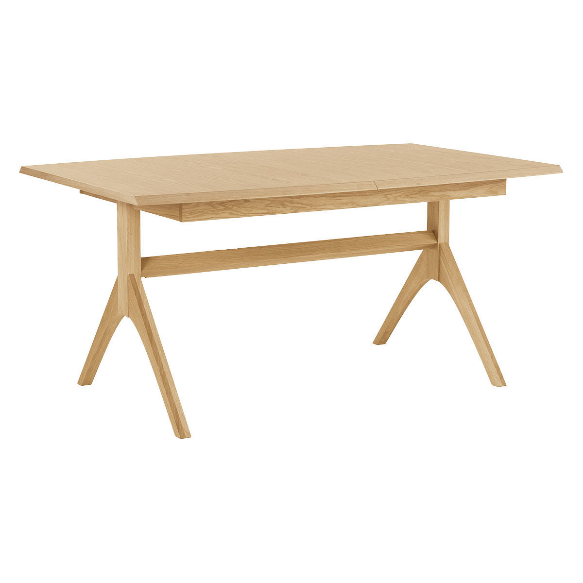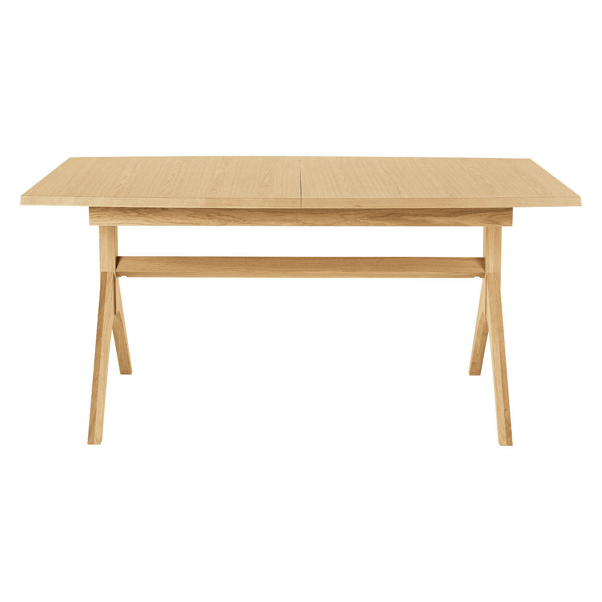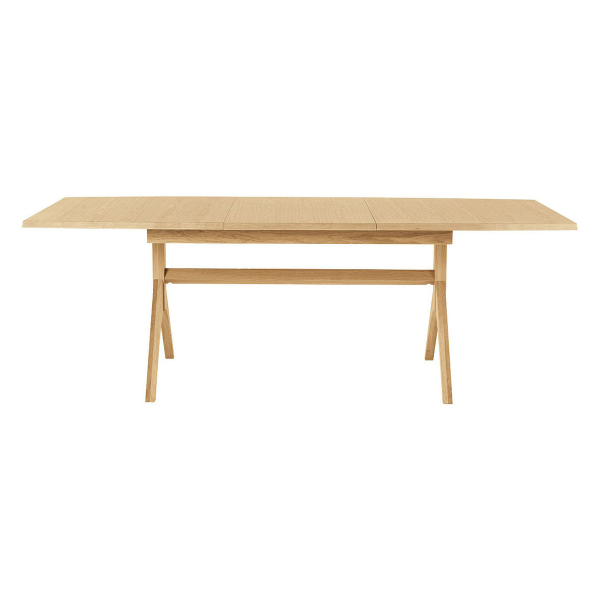Designed in house and exclusive to Habitat, the Oregan 6-10 seat oak extending dining table is an elegant, contemporary design with feature legs. Crafted in Europe from solid oak and oak veneer, the table top has subtle curves to elongate the chamfered edges and gives it a stylish twist. The table's extra leaf is stored underneath the table top for convenience and can easily be taken out to convert the table from a 6 seater to a 10 seater. Complete the look with the Oregan dining chair which comes in a variety of finishes.