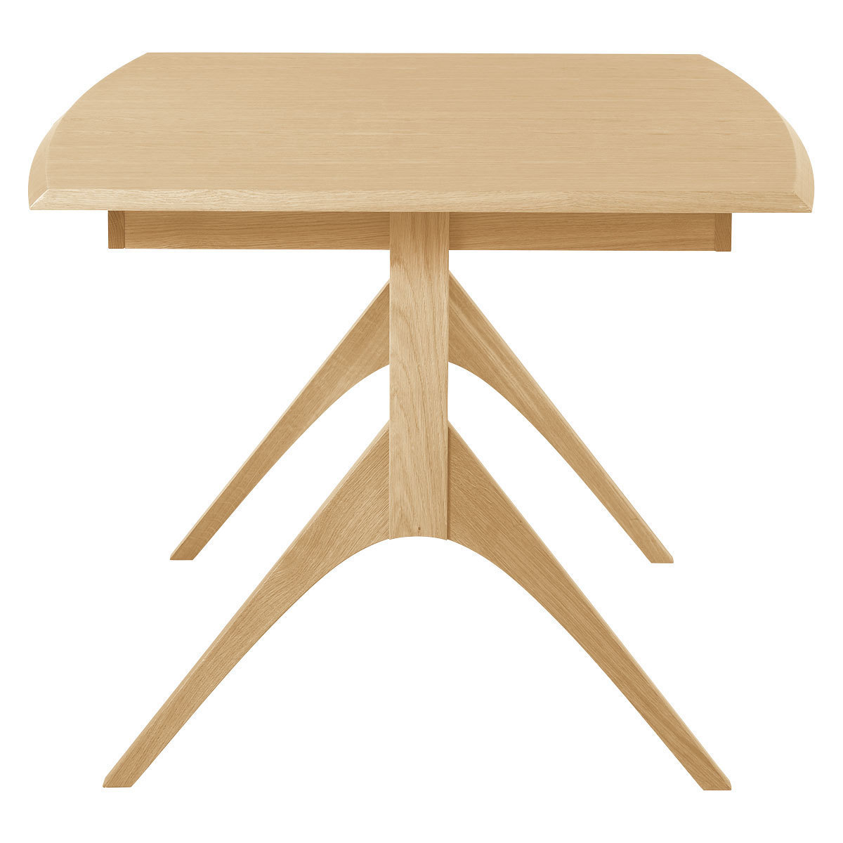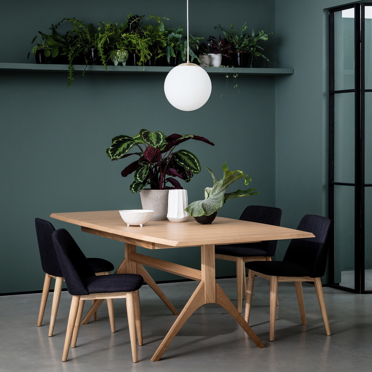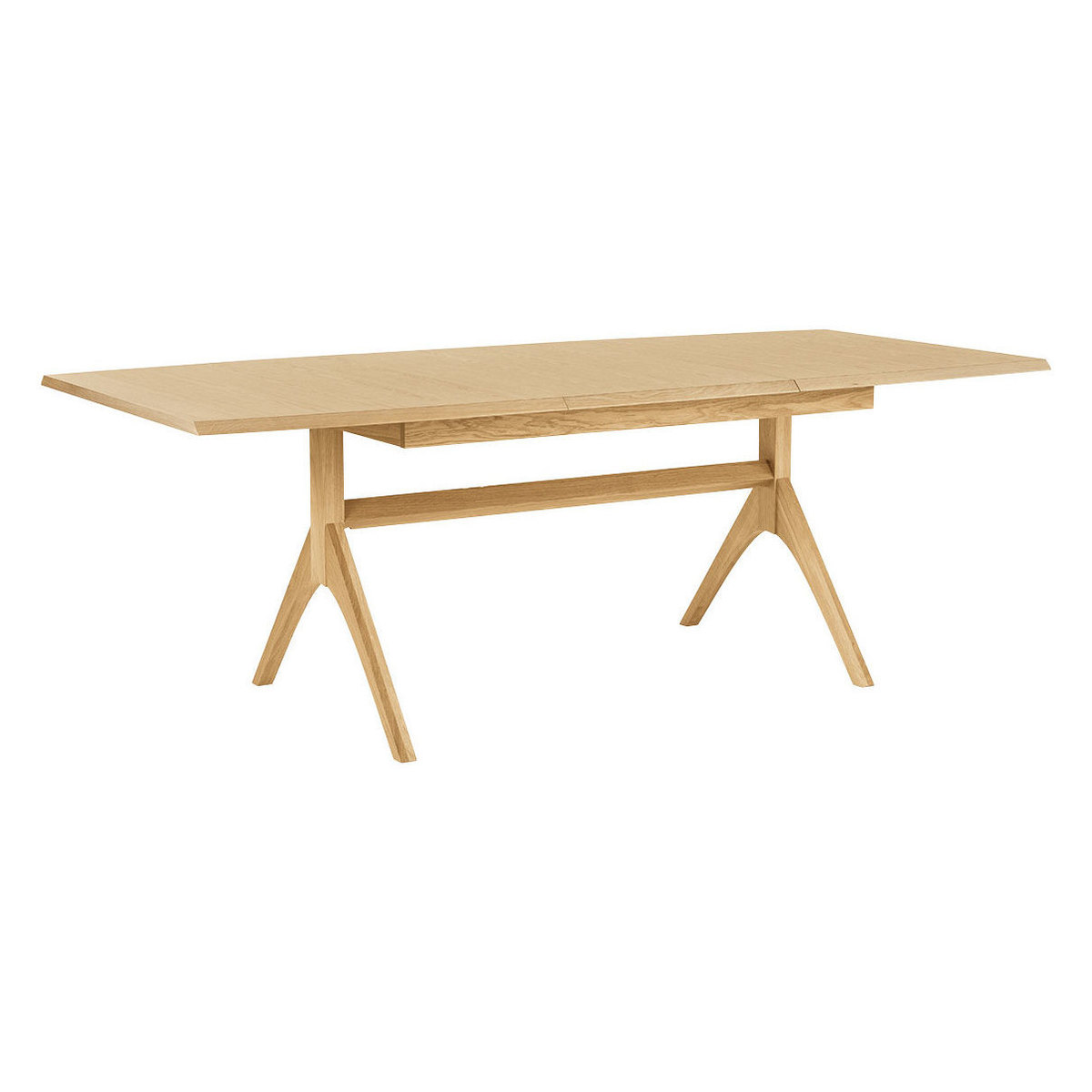 Designed in house and exclusive to Habitat, the Oregan 6-10 seat oak extending dining table is an elegant, contemporary design with feature legs. Crafted in Europe from solid oak and oak veneer, the table top has subtle curves to elongate the chamfered edges and gives it a stylish twist. The table's extra leaf is stored underneath the table top for convenience and can easily be taken out to convert the table from a 6 seater to a 10 seater. Complete the look with the Oregan dining chair which comes in a variety of finishes.