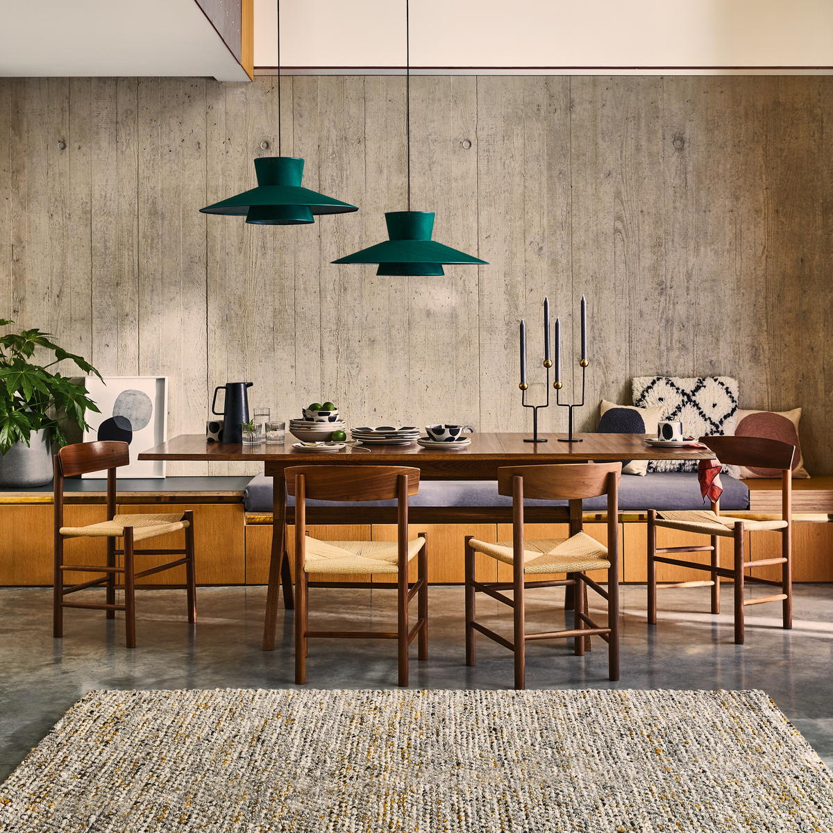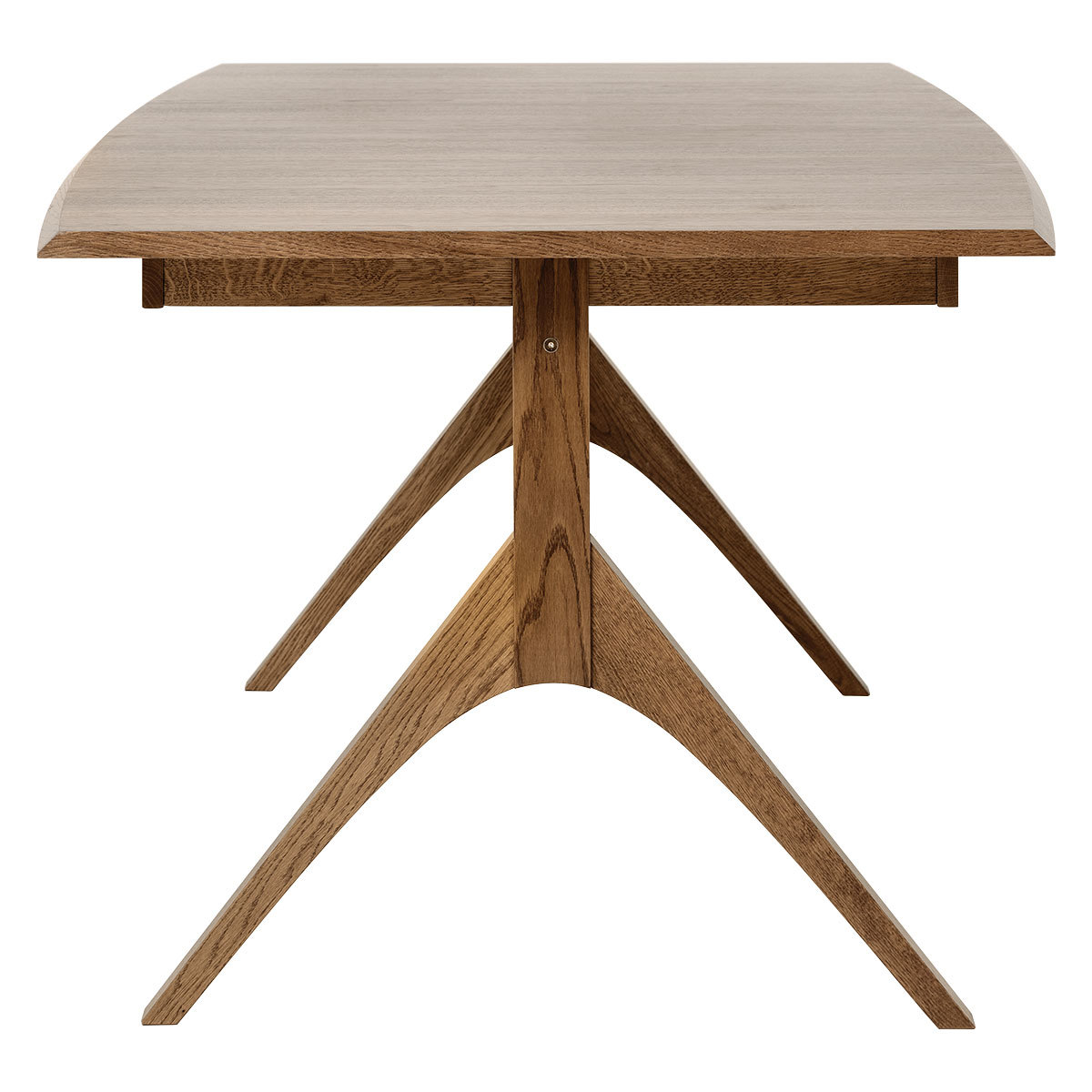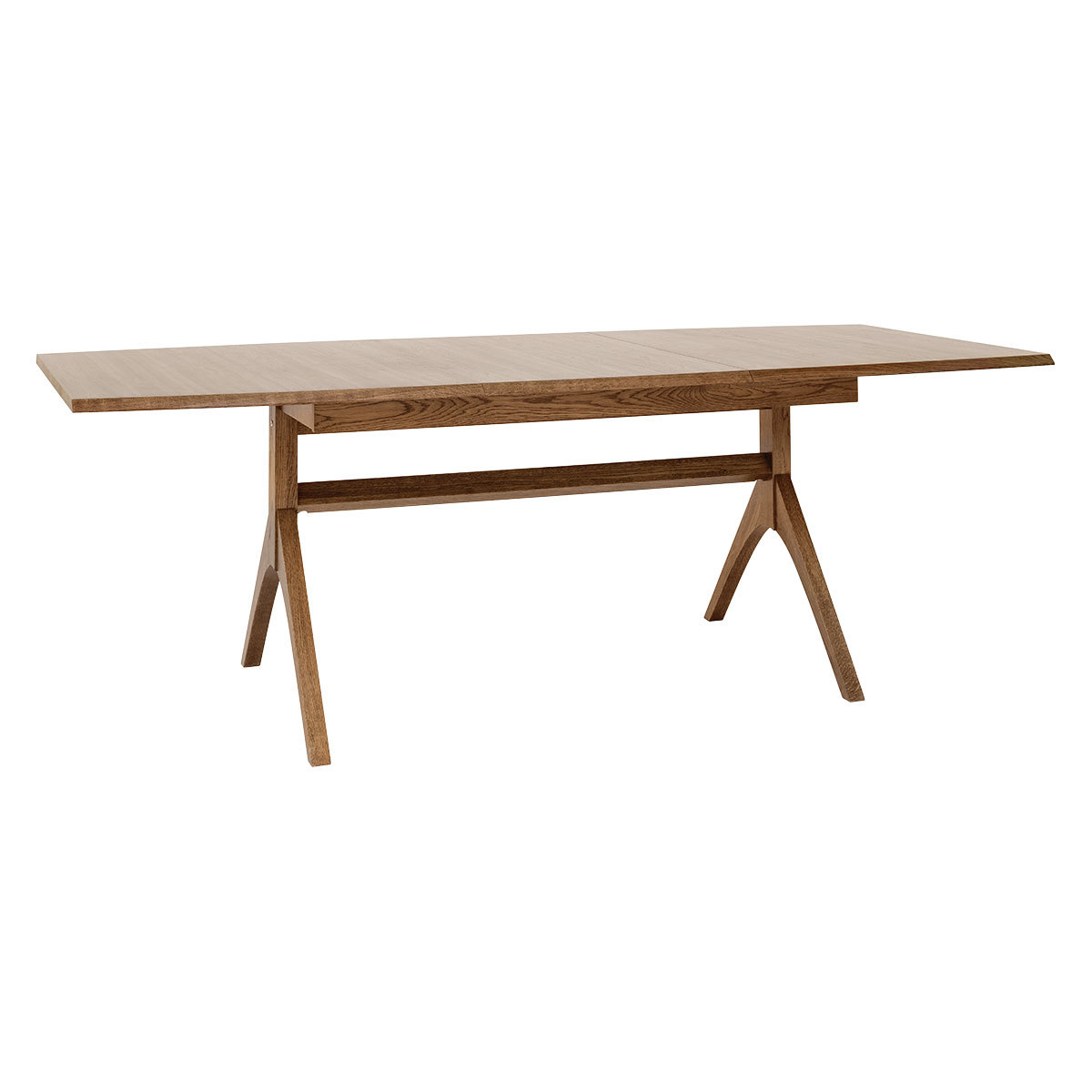 Created in the Habitat design studio, the Oregan 6-10 seater walnut extending dining table is an elegant, contemporary design with feature legs. Crafted in Europe from walnut veneer and walnut stained ash, the table top has subtle curves to elongate the chamfered edges and gives it a stylish twist. This table’s extra leaf is stored underneath the table top for convenience and can easily be taken out to convert the table from a 6 seater to a 10 seater. Complete the look with the Oregan dining chairs which come in a variety of finishes.